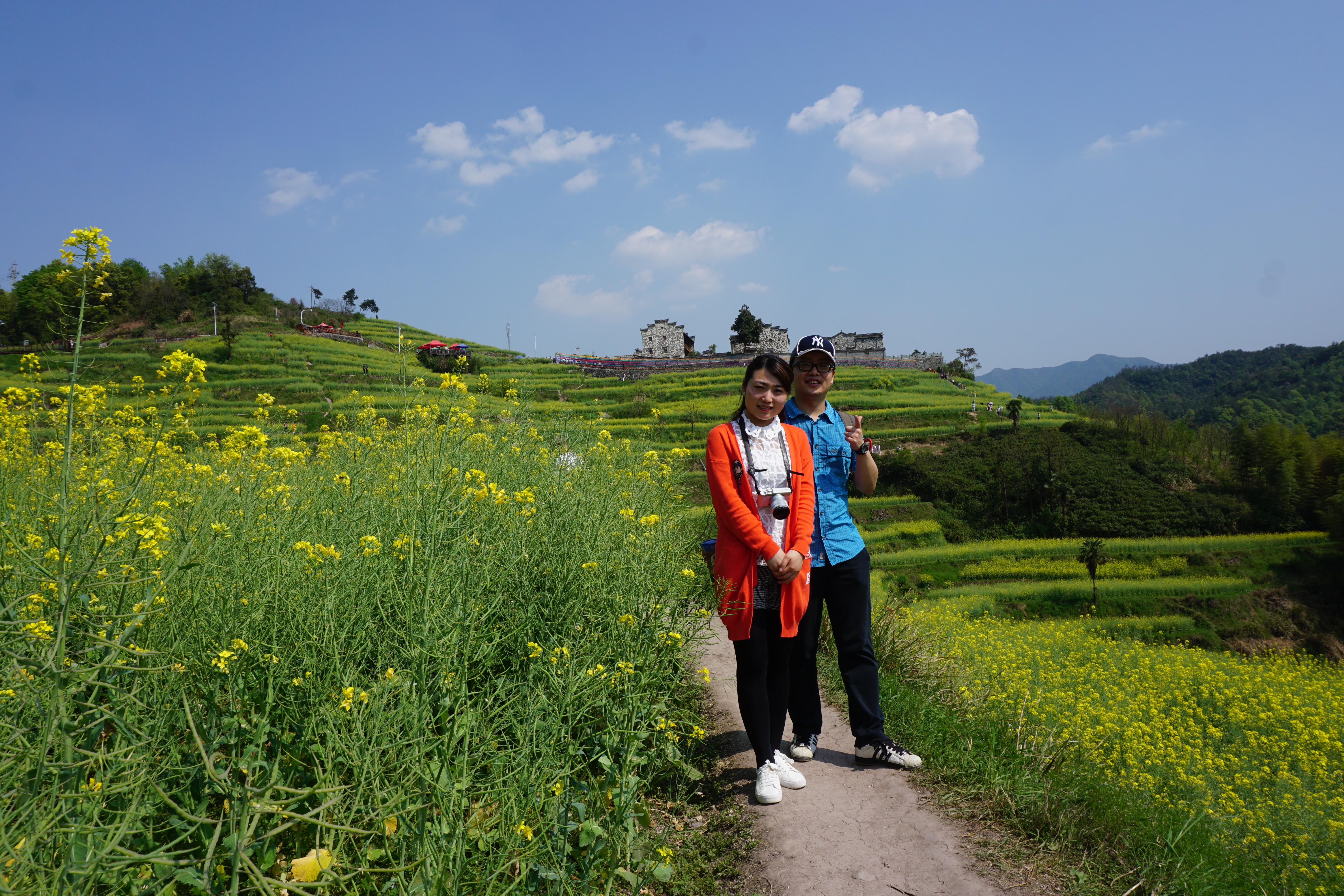 赏梯田油菜花。古村落。