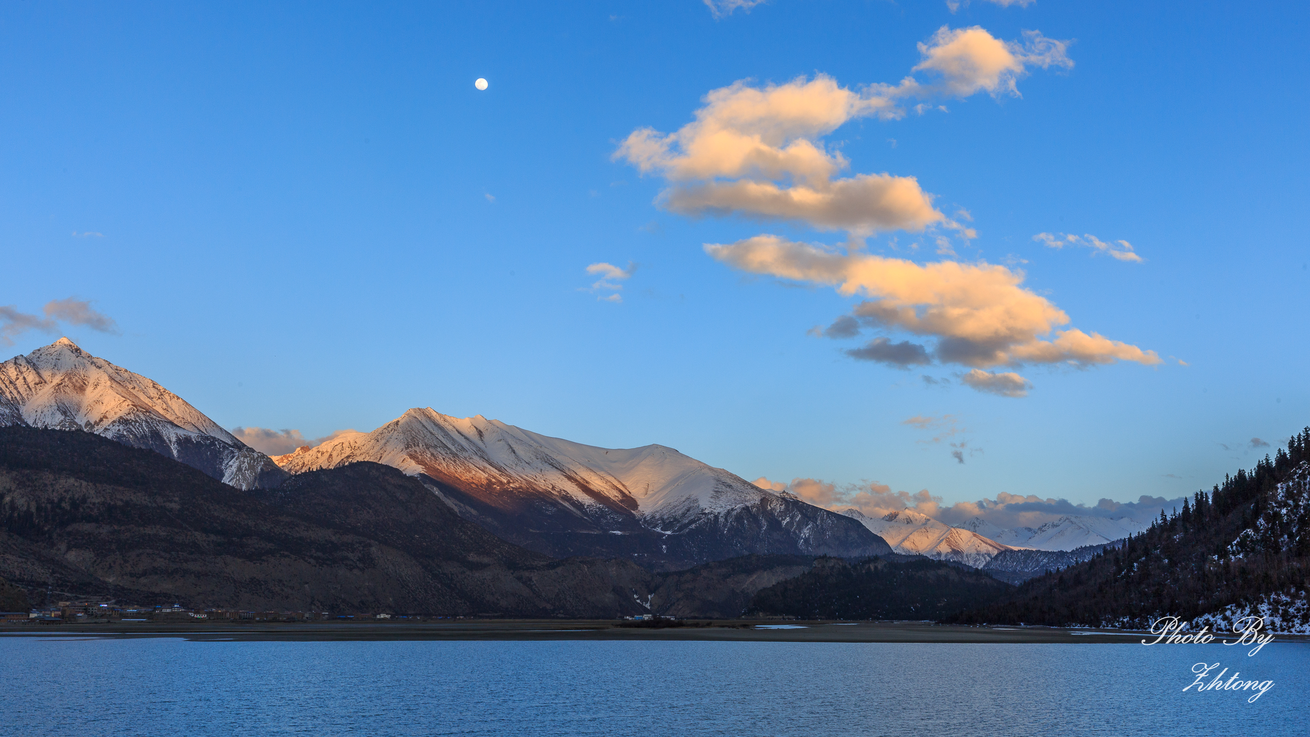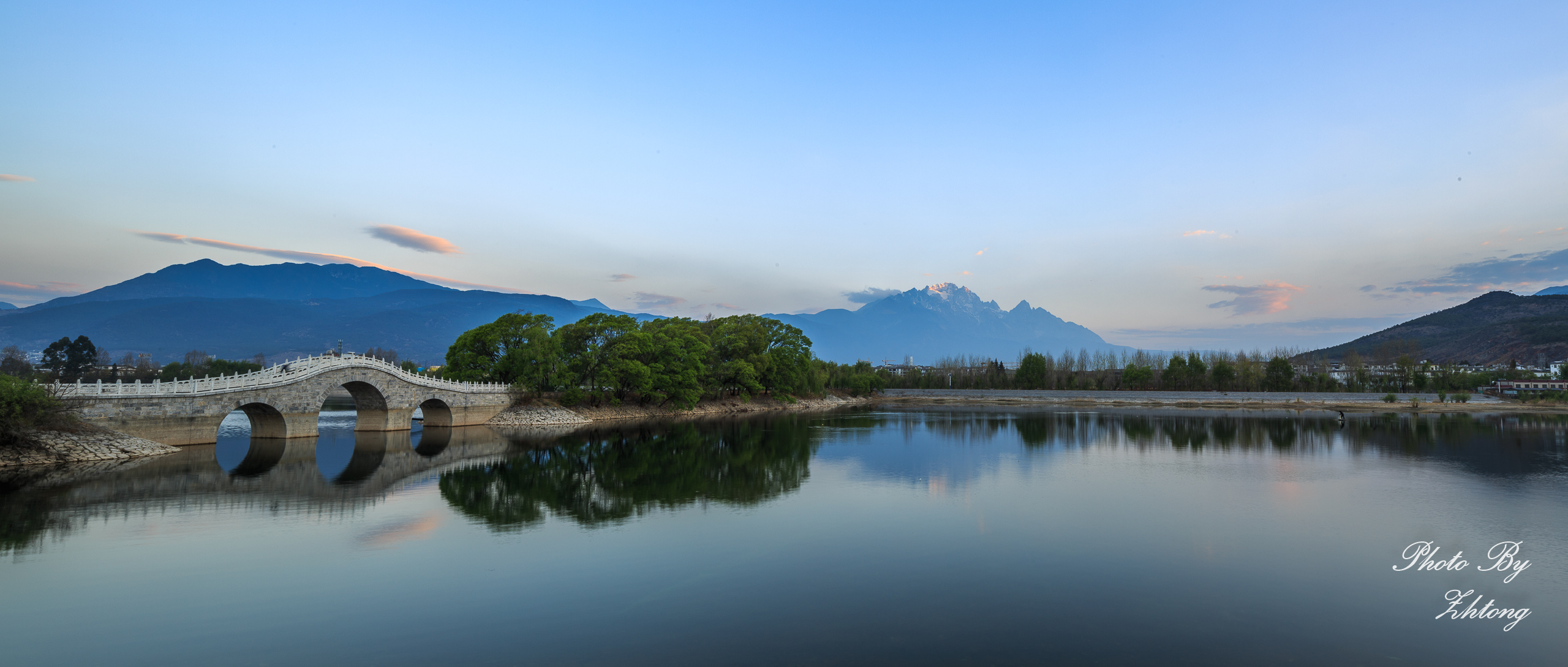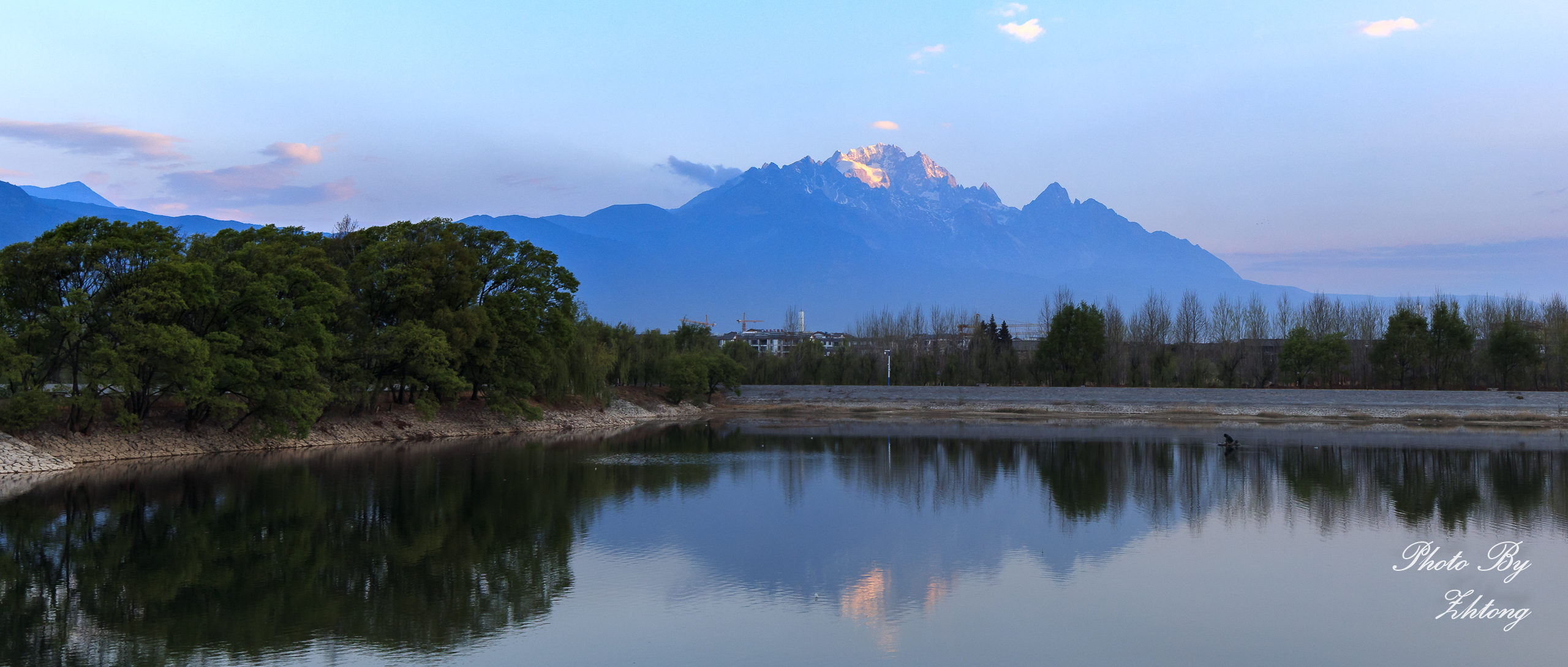 今天丽江的天气非常好,但对摄影来说,万里无云的天空总是显得有些单调。玉龙雪山倒影的拍摄点在清溪水库的堤坝上,从此开始我们这次的摄影之旅。希望我们有好运气!
