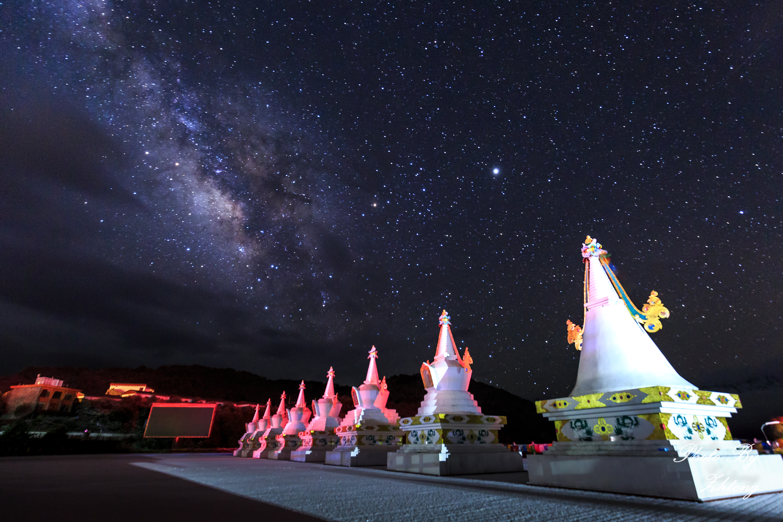 由于一直挂念着梅里的星空和日照金山,夜里三点就起来看天气,拉开窗帘,外面在下大雪。难道这次无缘见到梅里了吗?不死心的我在四点时又起来看天气了,还在下雪,但似乎小了些。终于在五点左右,雪停了,天空开始放晴,已经可以看到夜空里的星星在闪烁。不再等待了,拿上设备,冒着寒风出去拍星空了