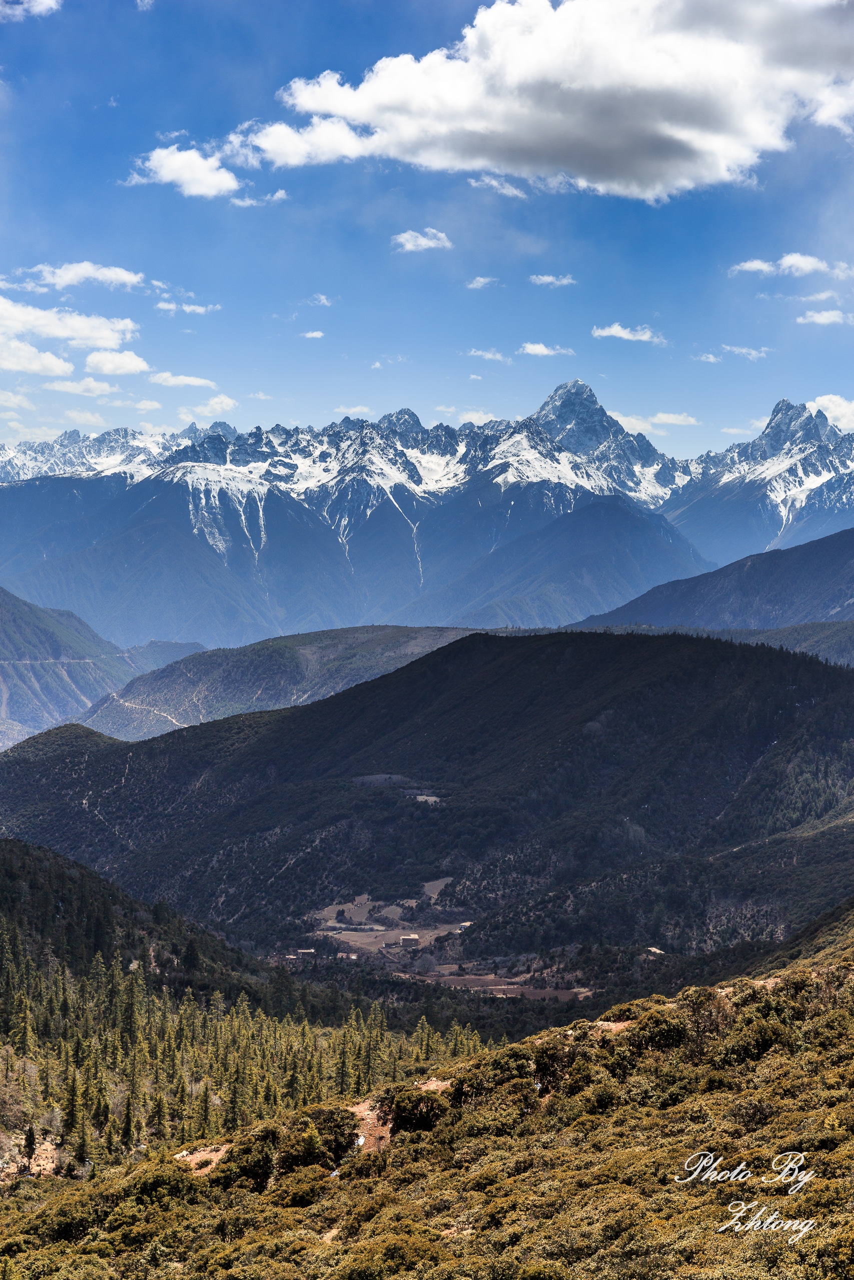 在雾浓顶远眺梅里
