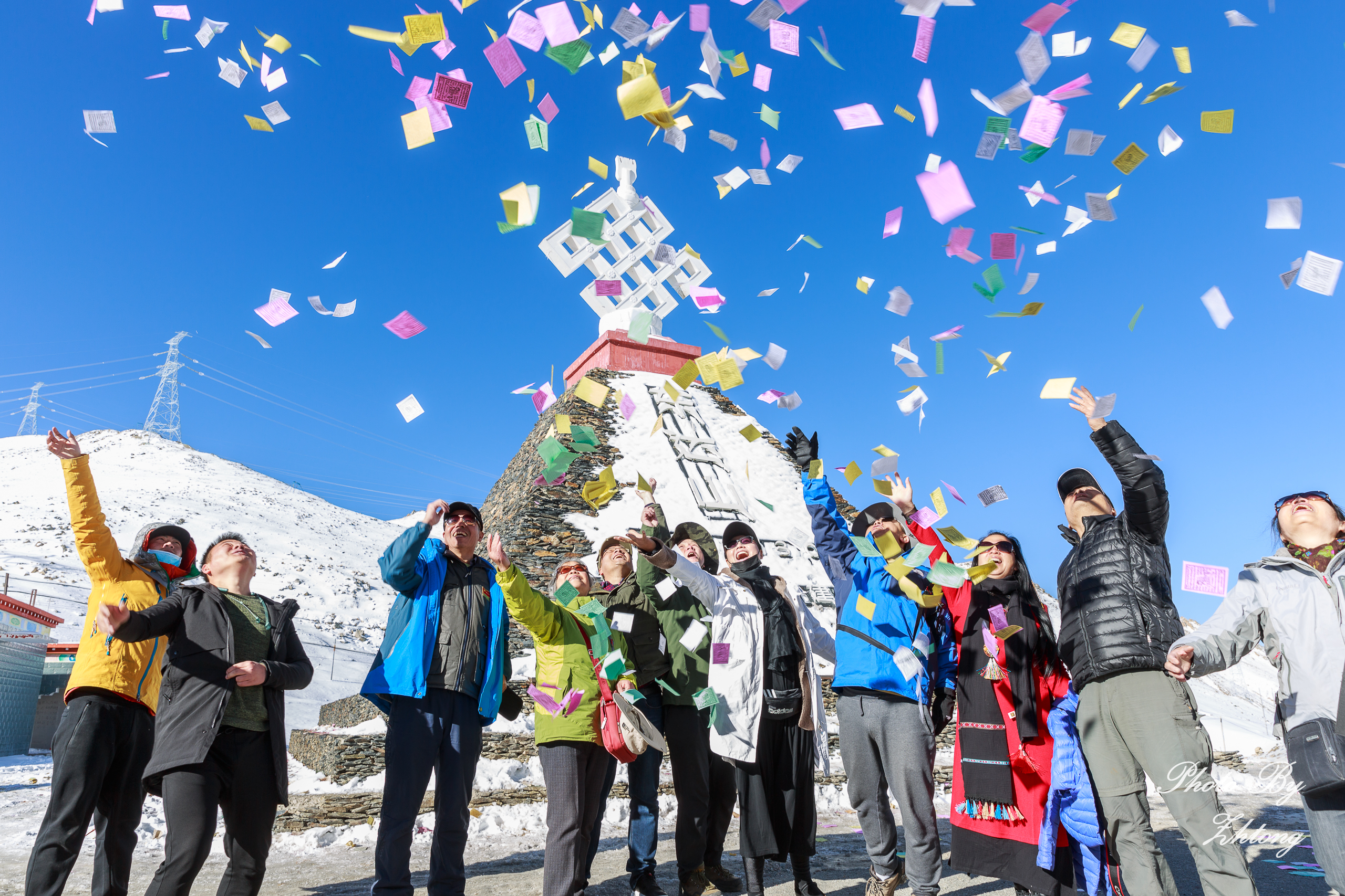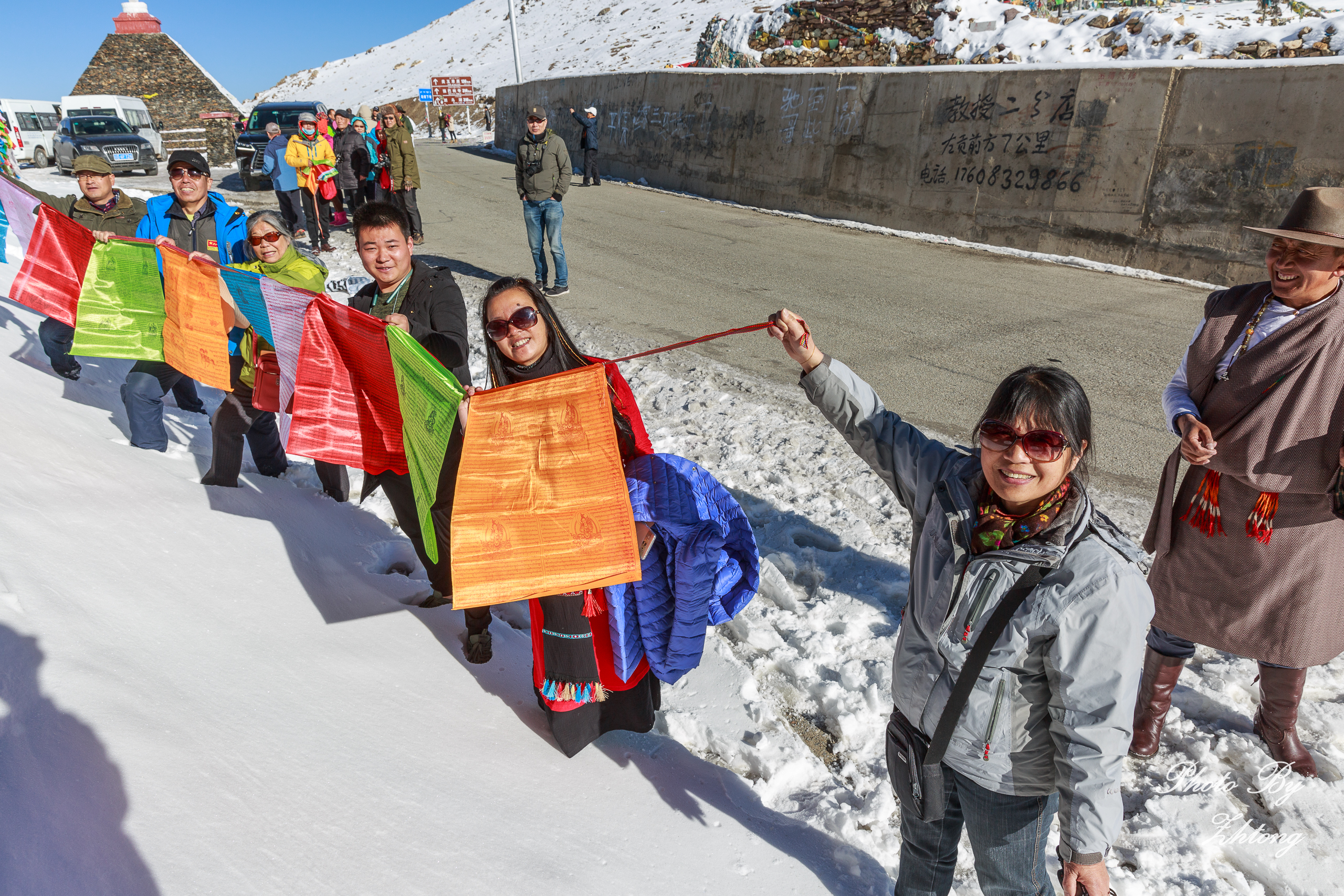 今天车程较长,沿途要翻越海拔3911米的觉巴山和海拔5013米的东达山,在此安排了挂经幡和飒隆达的祈福仪式,祝愿大家万事如意!