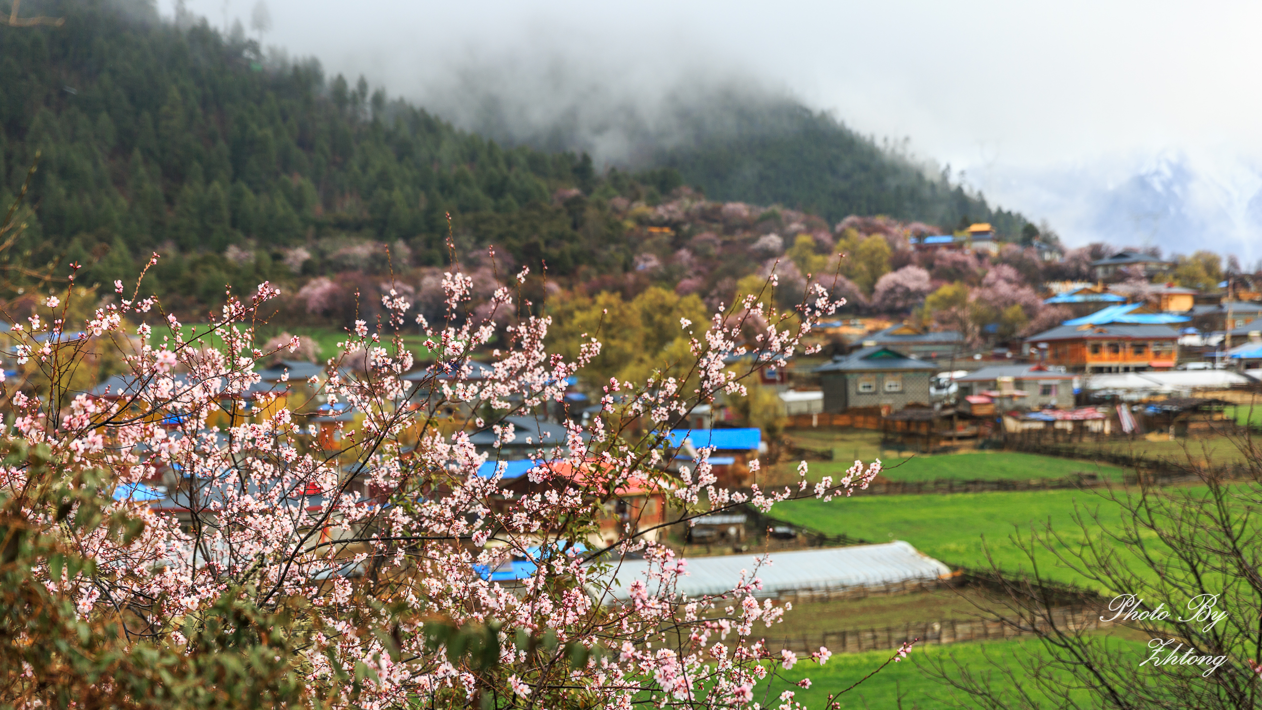 这一两天的行程算是全程的精华所在了,也是我梦寐以求的雪域桃花的核心区域。经过在波密一夜的休整,大家精神焕发的出发了。然而当我们到达嘎郎湖时,却下着大雨,心头的那些激情差不多快被雨水浇灭了。在我们正准备掉头去往桃花沟时,我无意间发现一处农庄,在雨中也显得特别美丽,于是我召集队员们冒雨开始拍摄。此时老天爷似乎也被我们的决心所感动,雨停了,天空也开始放晴,所有人都为此感到兴奋,毫不吝惜相机的快门,只为记录下这难得的美景。