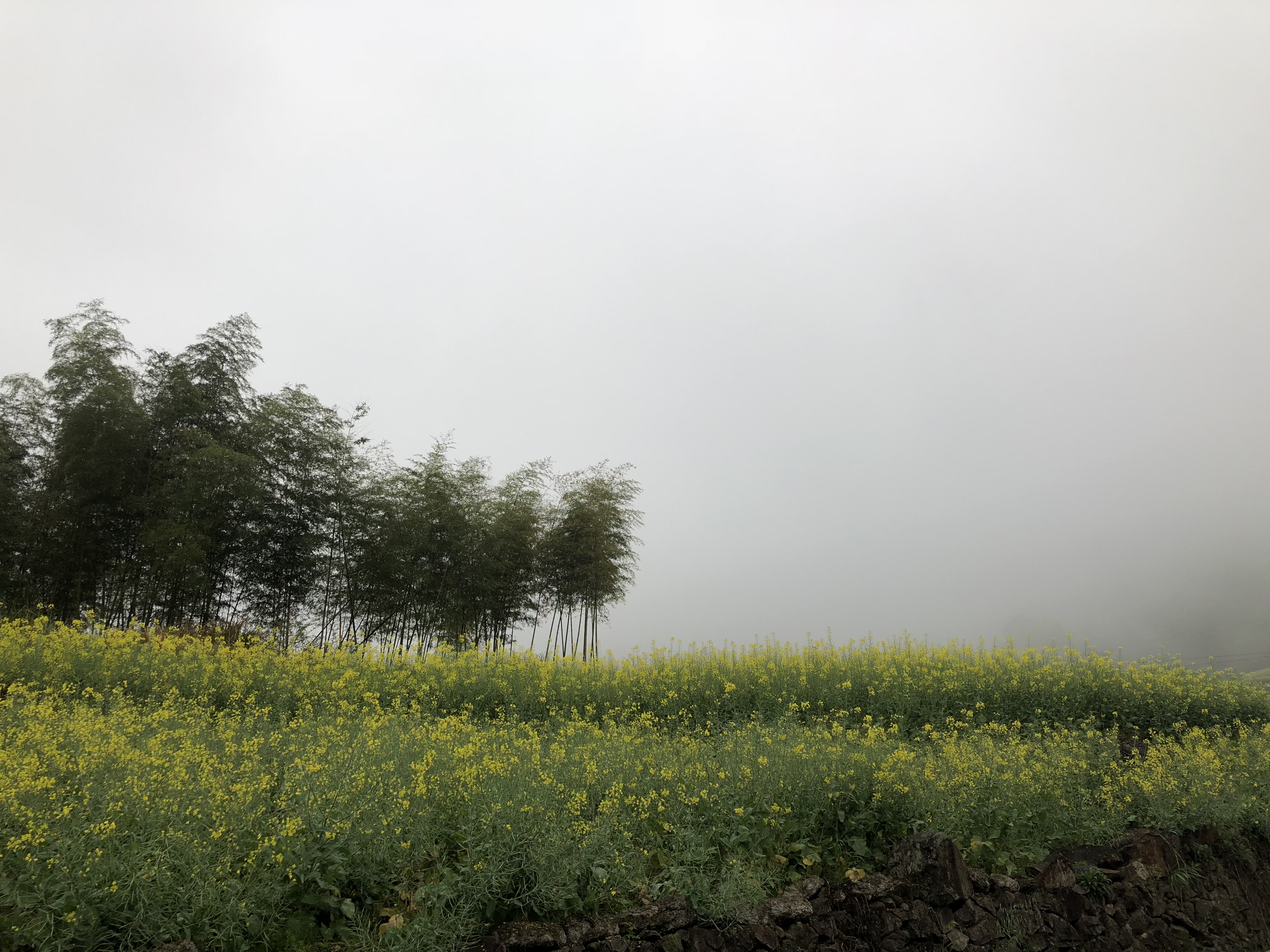 虽然,雾霭蒙蒙,层层的黄绿绸带依然谱写出朦胧的梦的色彩。