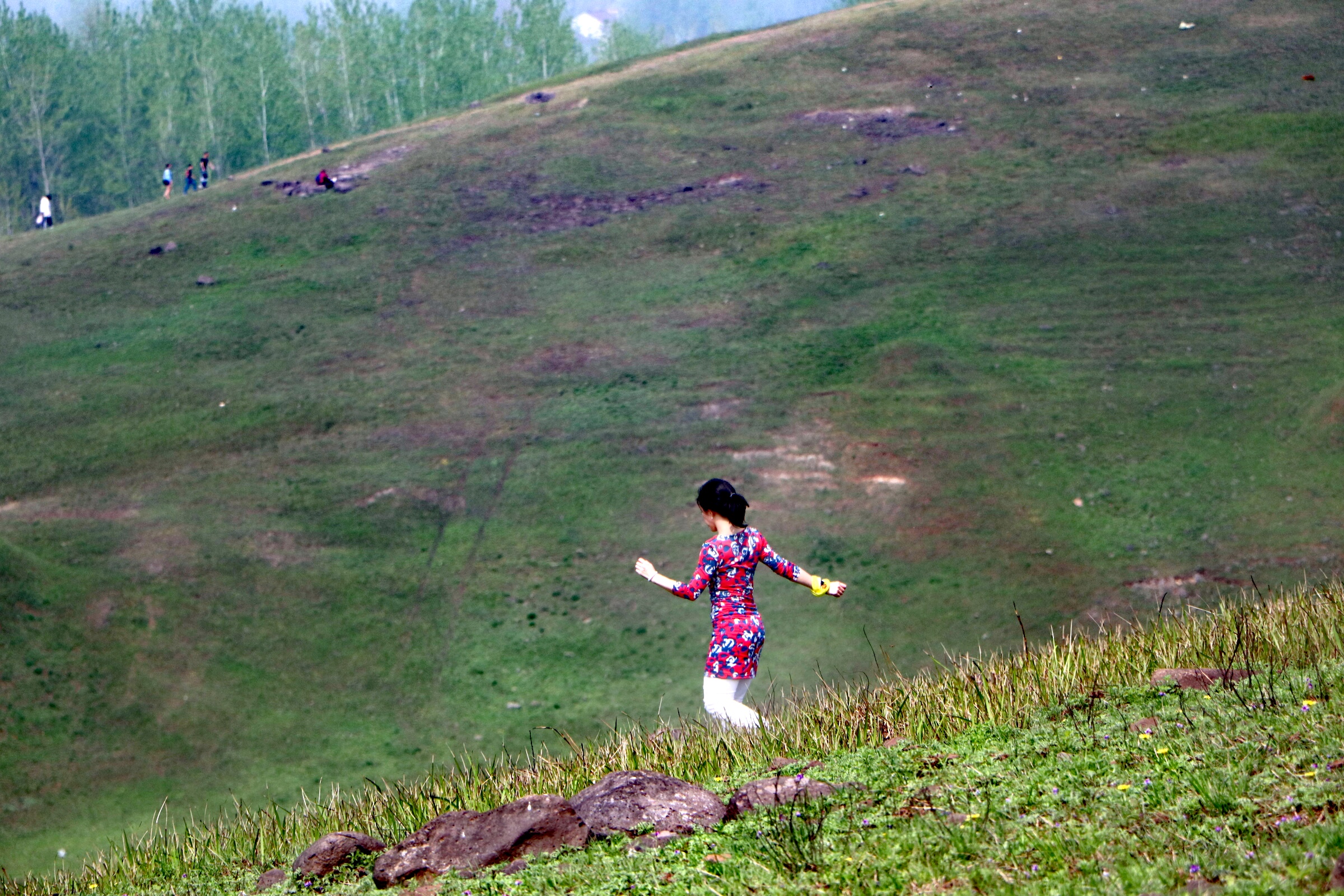 我从未去过草原,更不曾看过牛马成群,羊群如云般“飘”过。所以,草原对我有着天然的吸引力。晌午时分,当大巴车缓缓停下,带着队员急匆匆的奔上恋山坝上草原。。。
