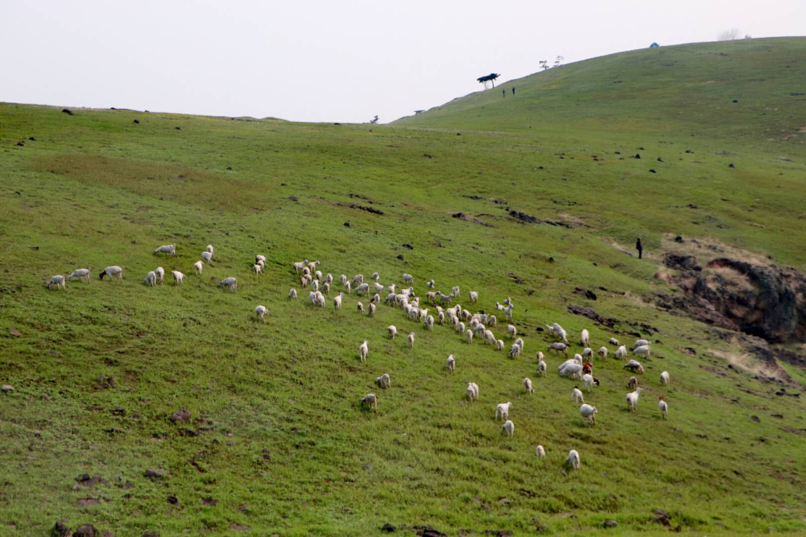 说好的风吹草低见牛羊呢?草是有了,风也有了,独不见了牛羊。