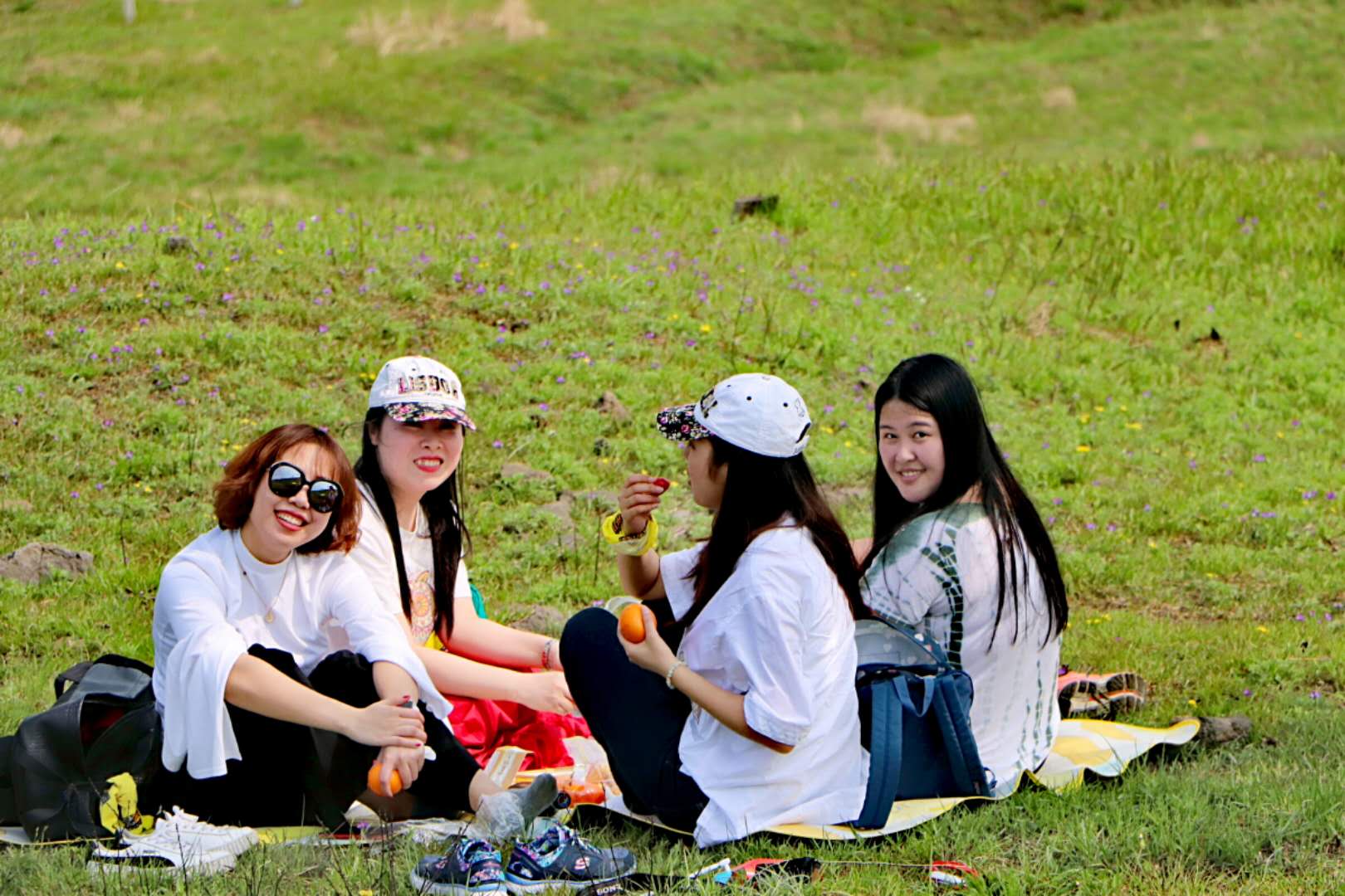 说起野餐,就不能不说Tracy的四人组了,一般人路餐都是找个阴凉的地方席地而坐,然后开始大口吃肉,大口喝水,而她们,从上海带了一块野餐垫到了南京。