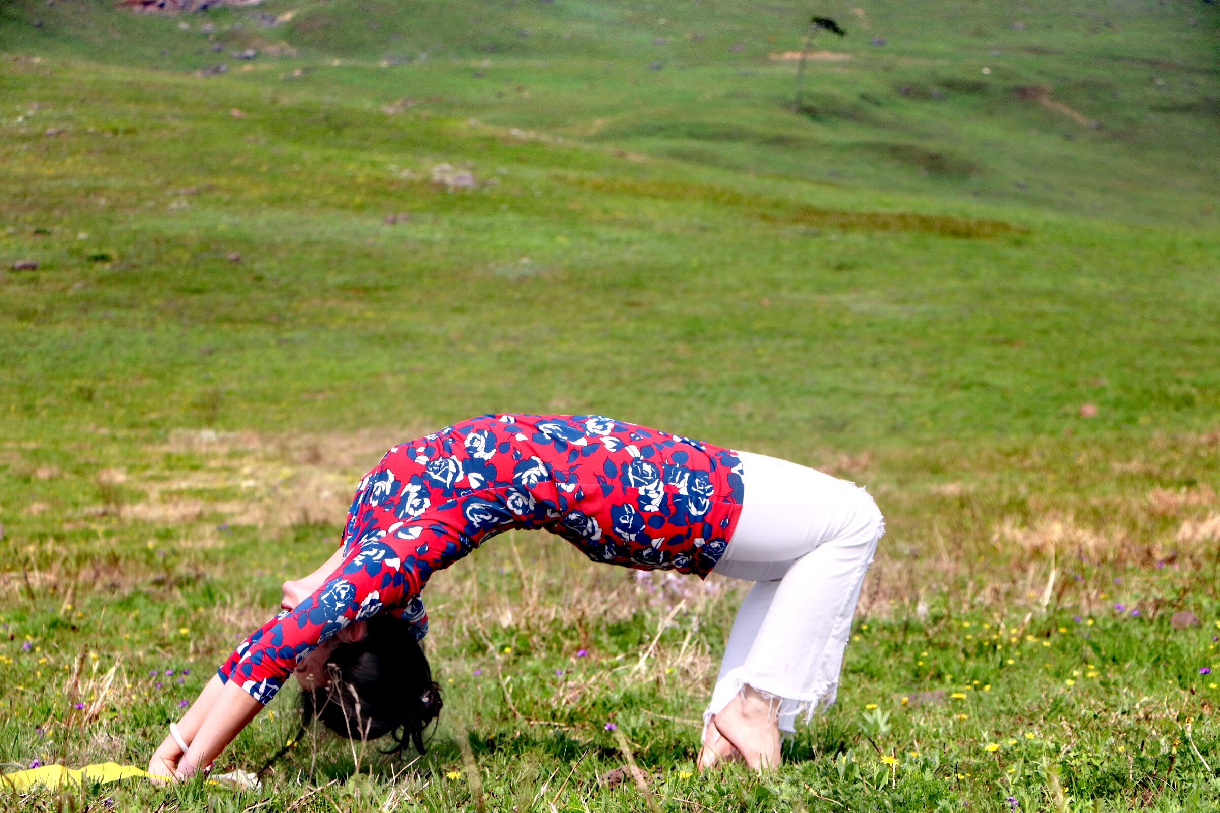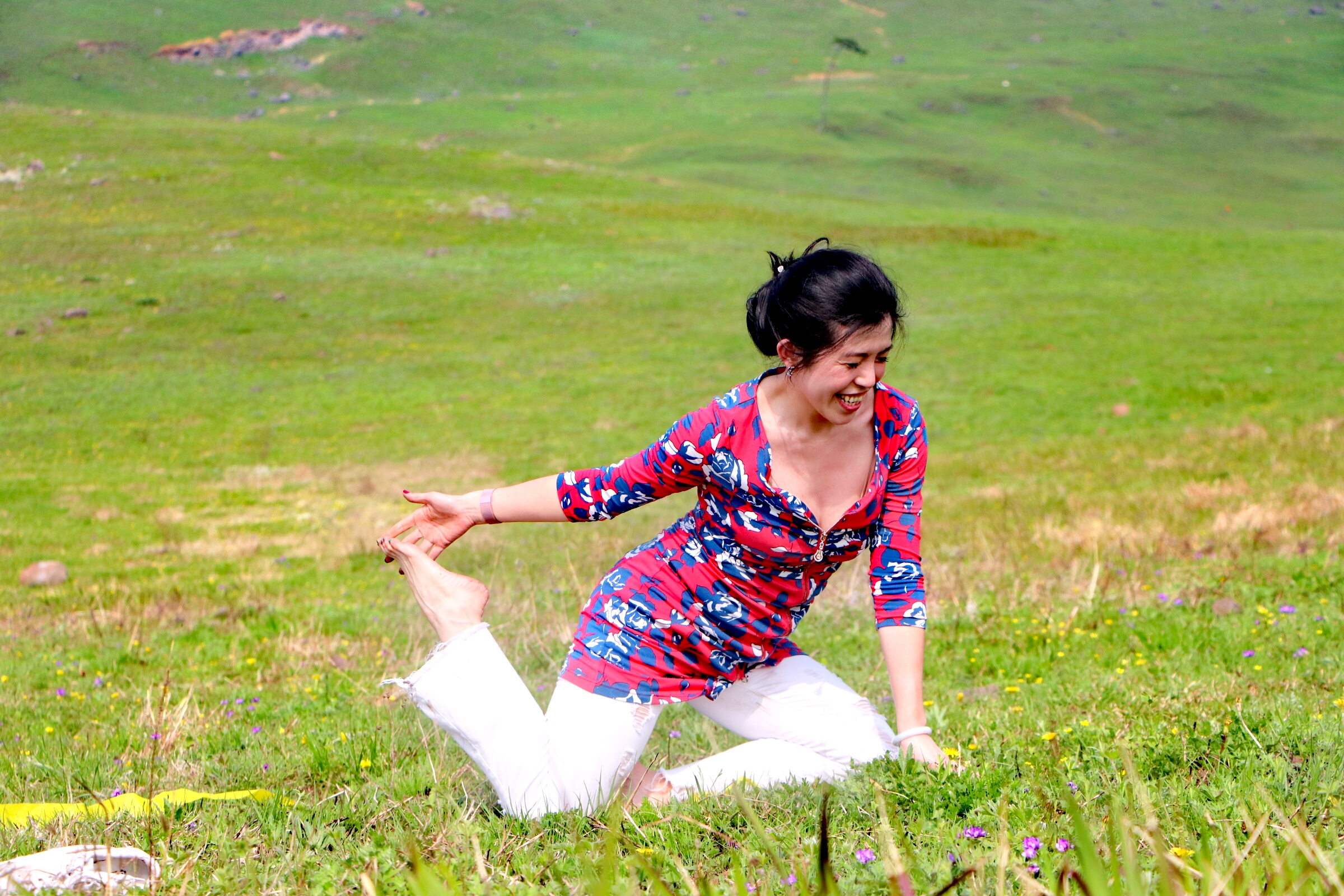 看过很多室内瑜伽,但户外的还是第二次见,翠绿的草色映衬着Sophia曼妙的身姿,实为草原一景。