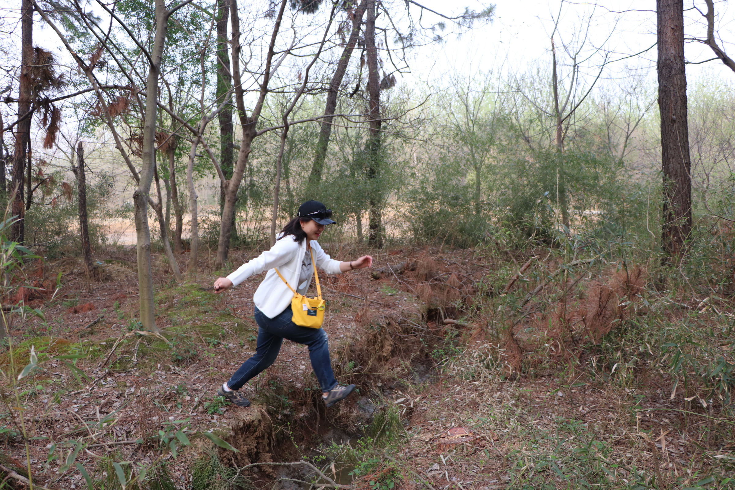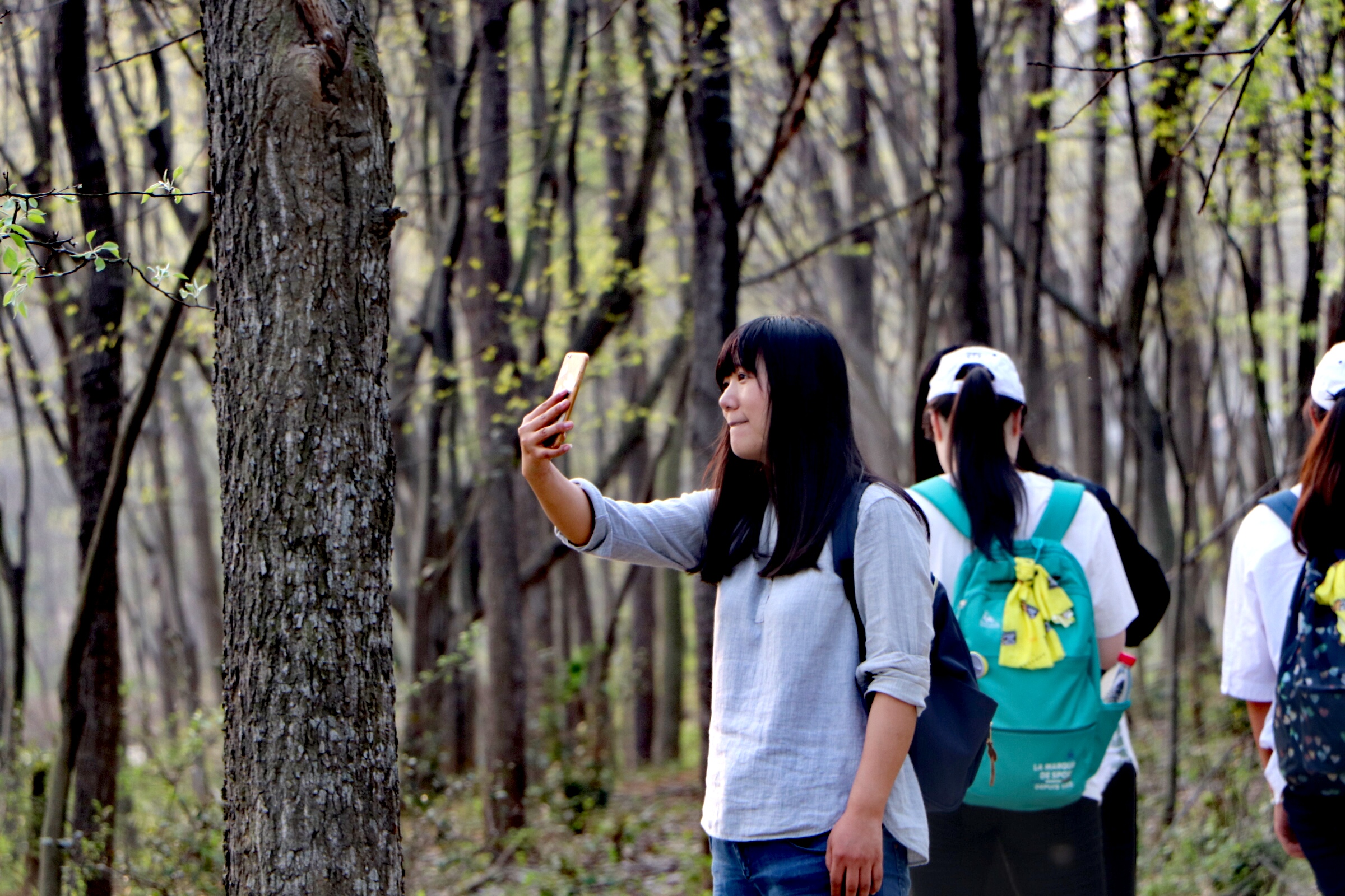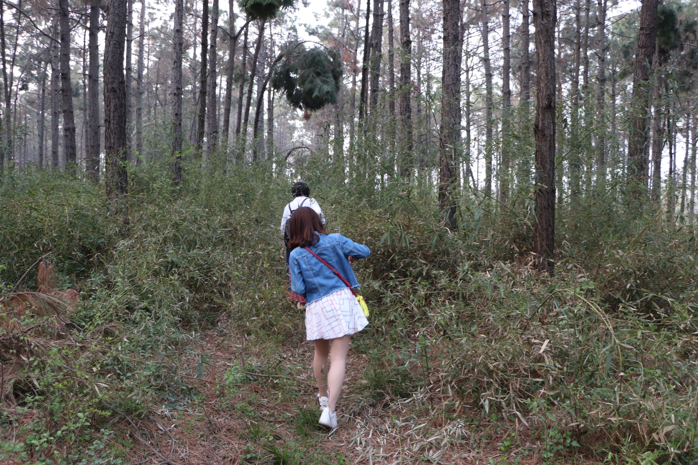 树林里枝枝丫丫拦着,冷不丁还冒出来几棵荆棘挂住裤腿,勾住裙摆。对于男生来说,这些都不是事,唯独穿了短裙的她,是一大挑战。