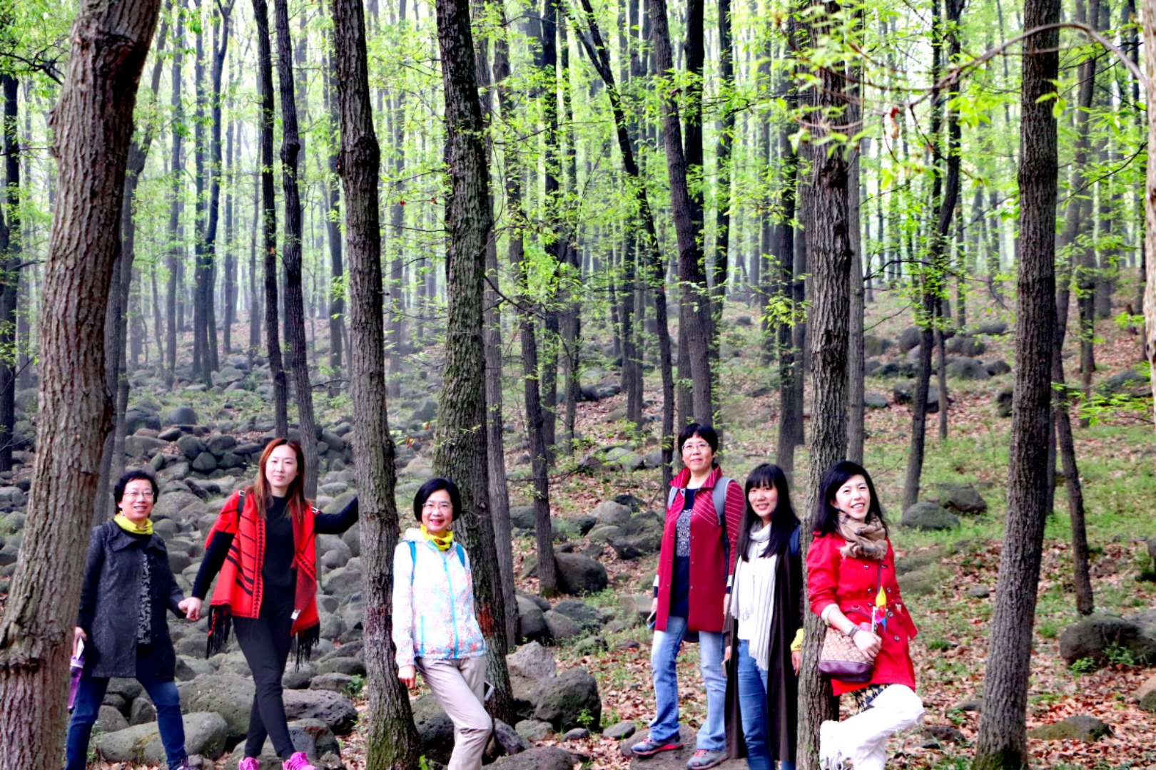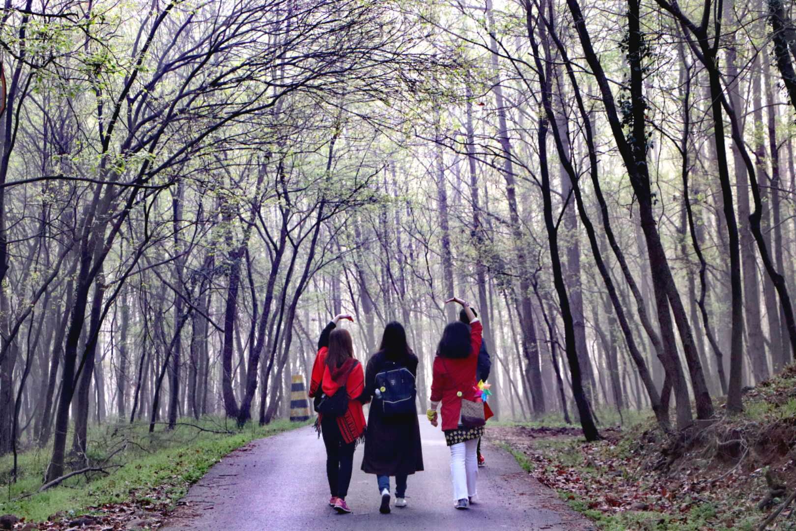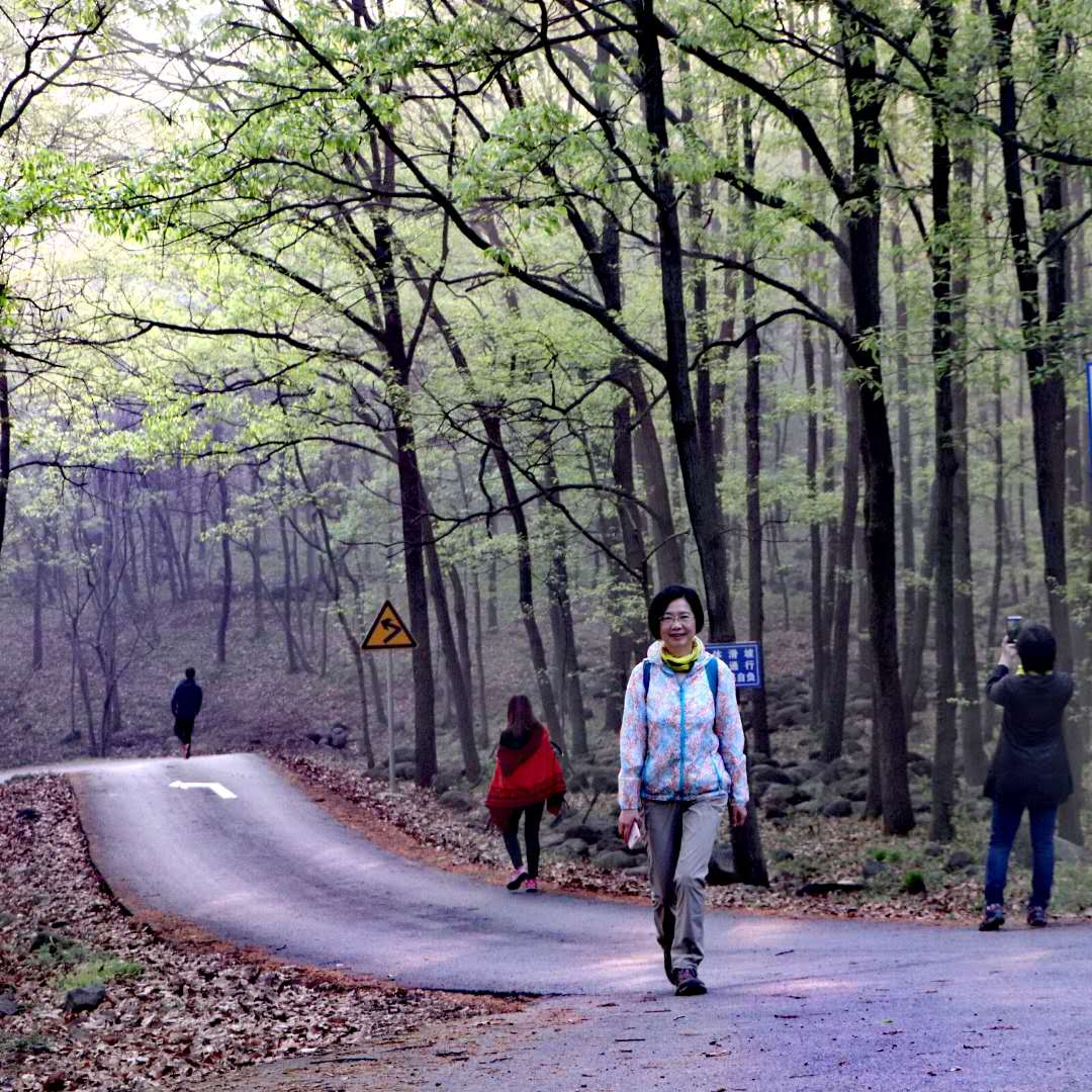 清晨,一行人走在安静的林间公路上,听着林间的鸟叫虫鸣,呼吸着雨后清新的空气,甚是惬意。