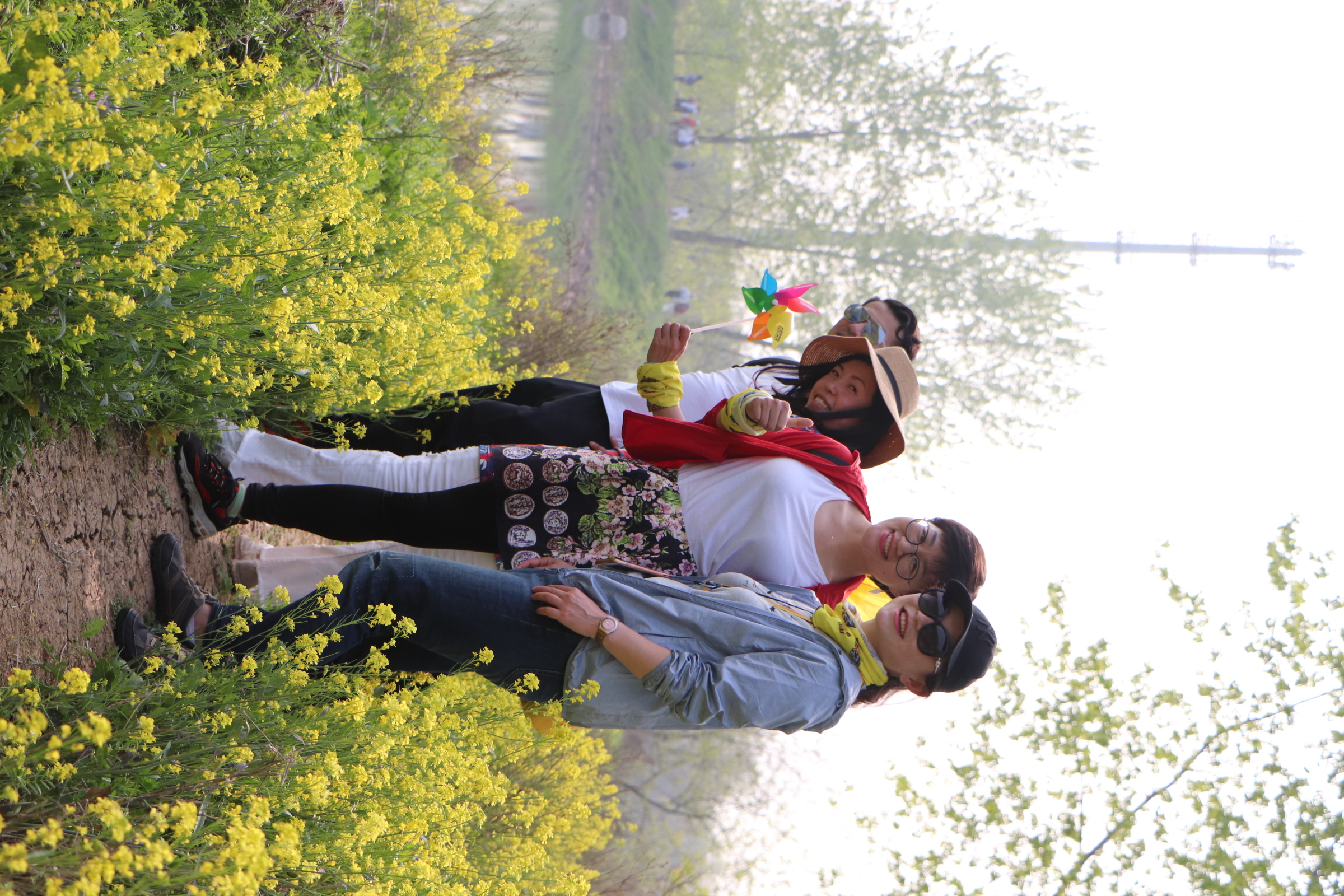 连山草原下来的时候,一片水塘边的油菜花地,实在不认错过,就叫住她们拍了一张;