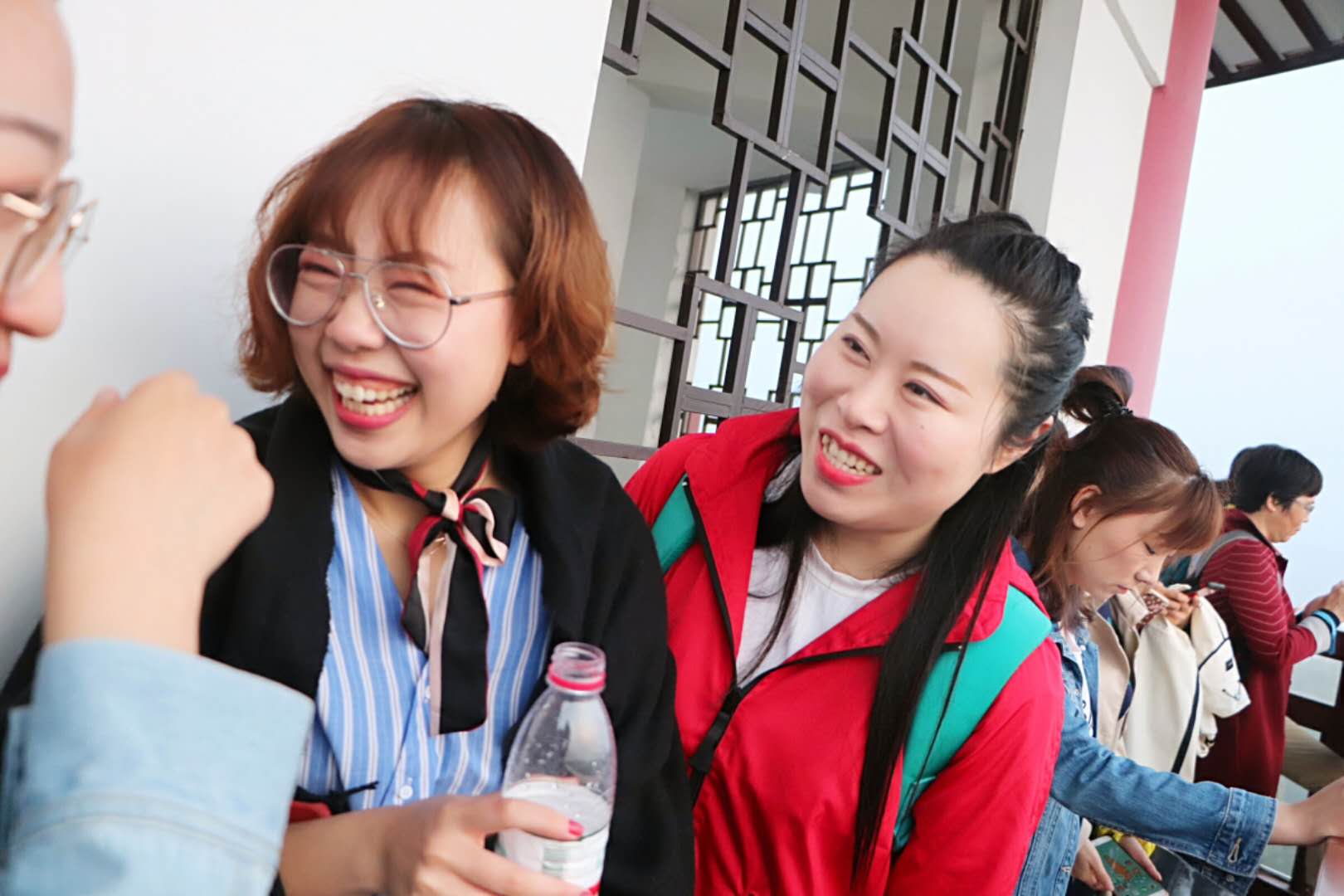 她们是同一所学校的老师。(“老师,你们出来玩,想过我们在家做作业的感受吗?”看来朋友圈是不能发了)