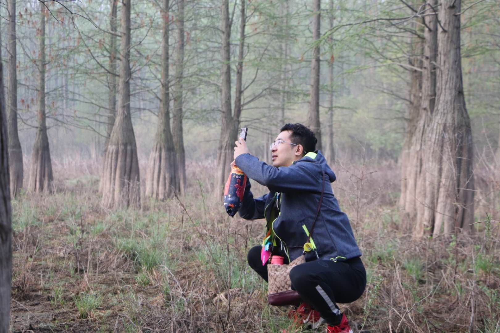 本以为可以在水杉边(最近)的观景台看日落,怎奈树比人高,完全看不见。于是,一行人又沿着水边栈道(小径)前往最佳观赏点。