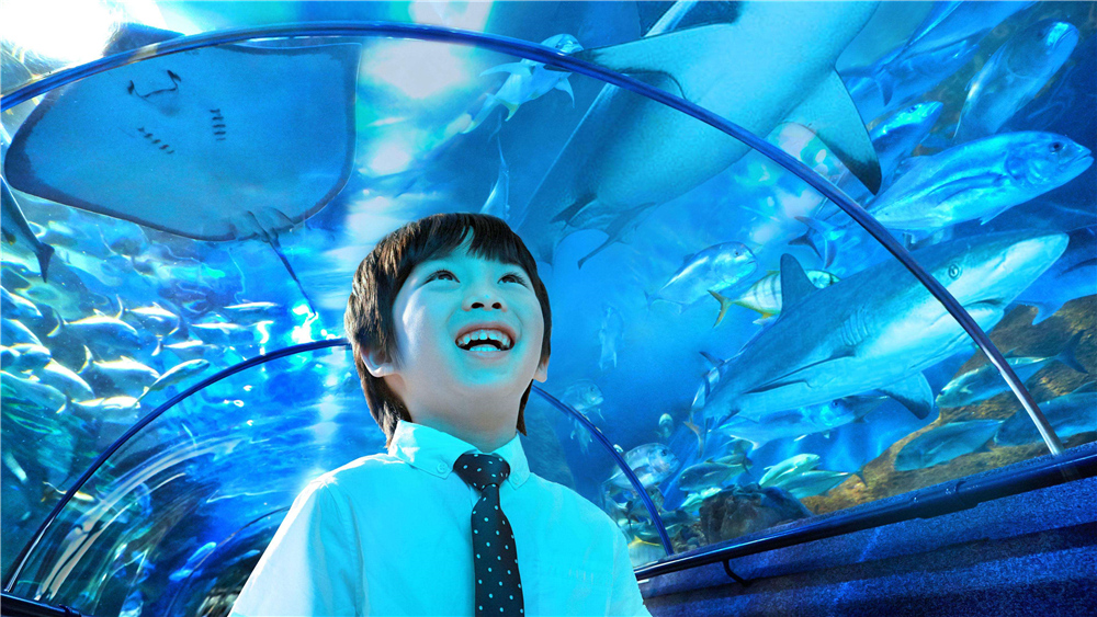 大概2小时30分钟,顺利到达湖州长兴海洋馆,兴奋的孩子们,早已安奈不住了,车子还在景区大道缓缓而行的时候就有冲出大巴车的趋势。