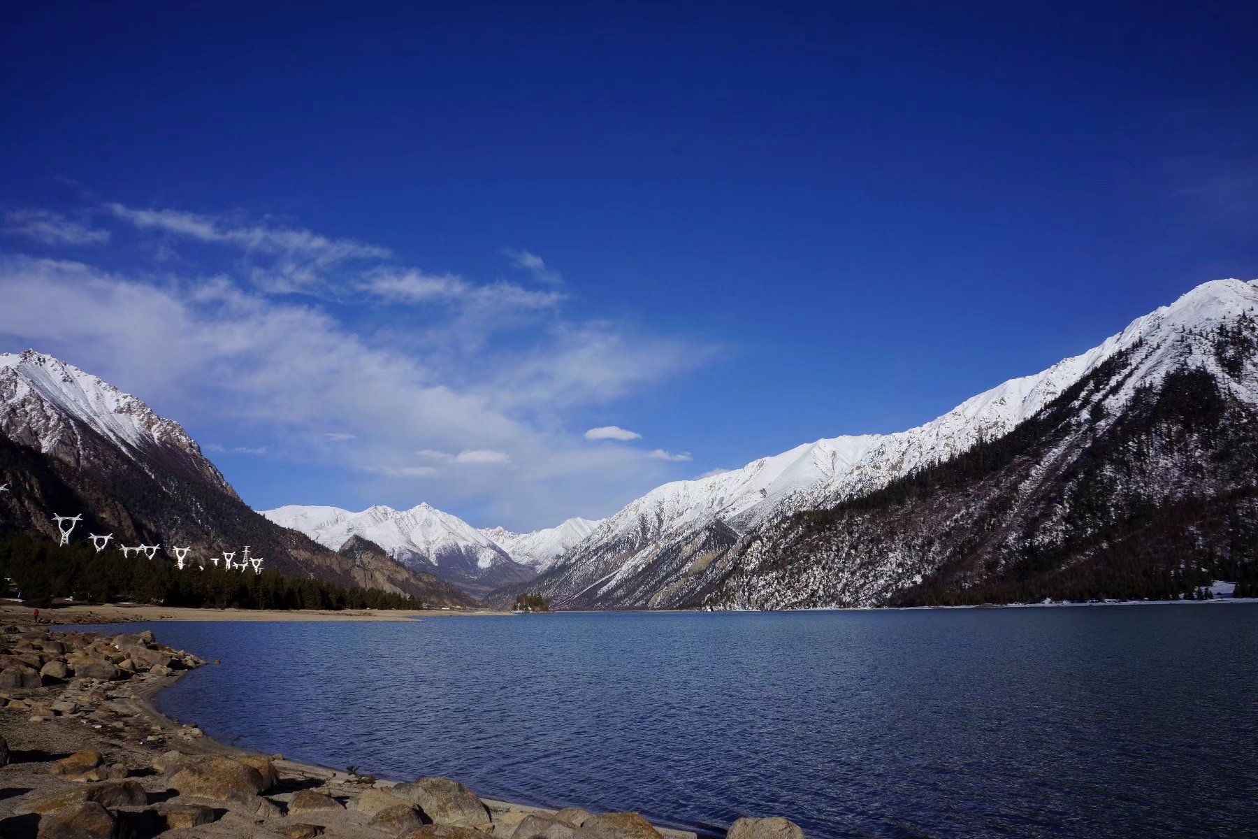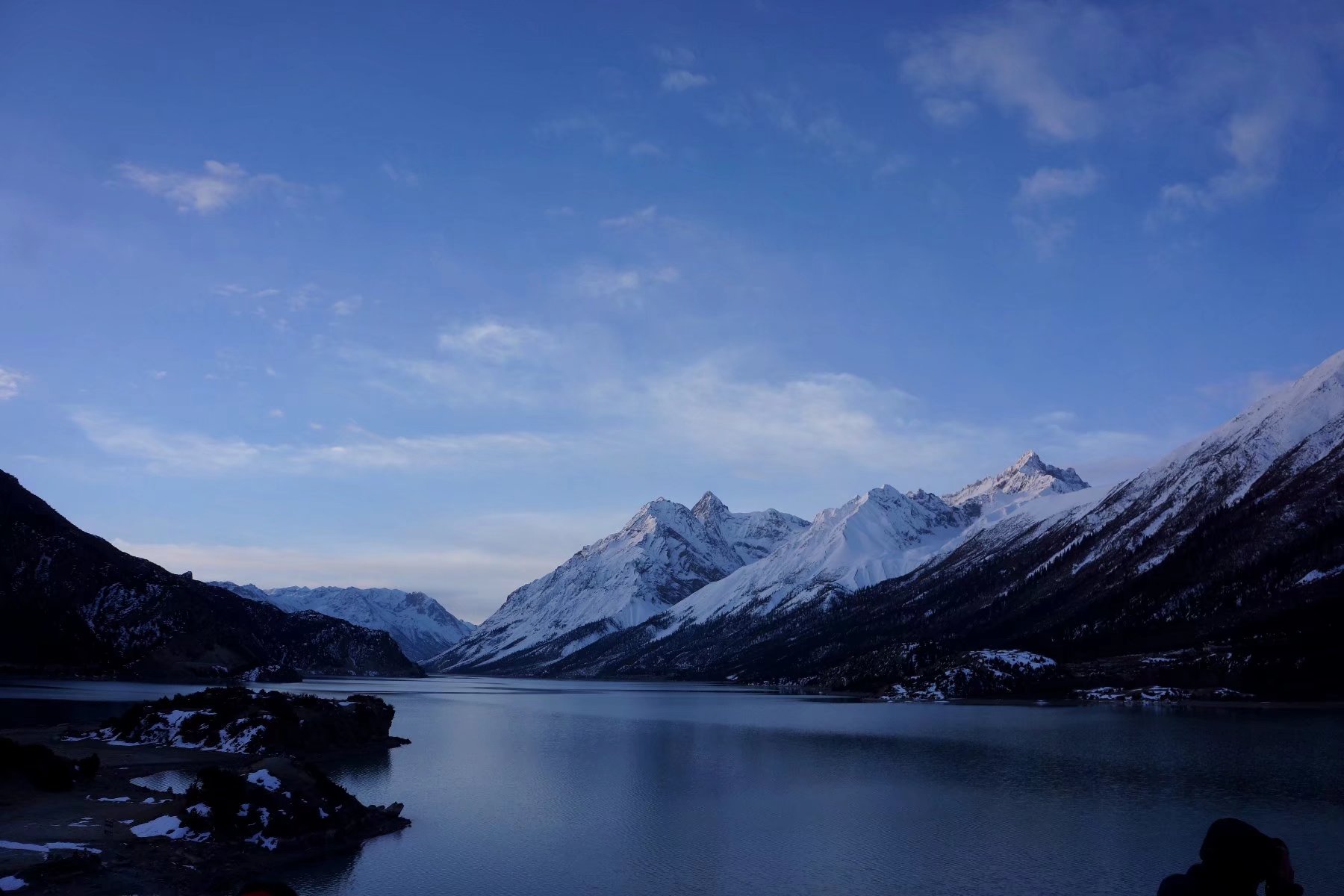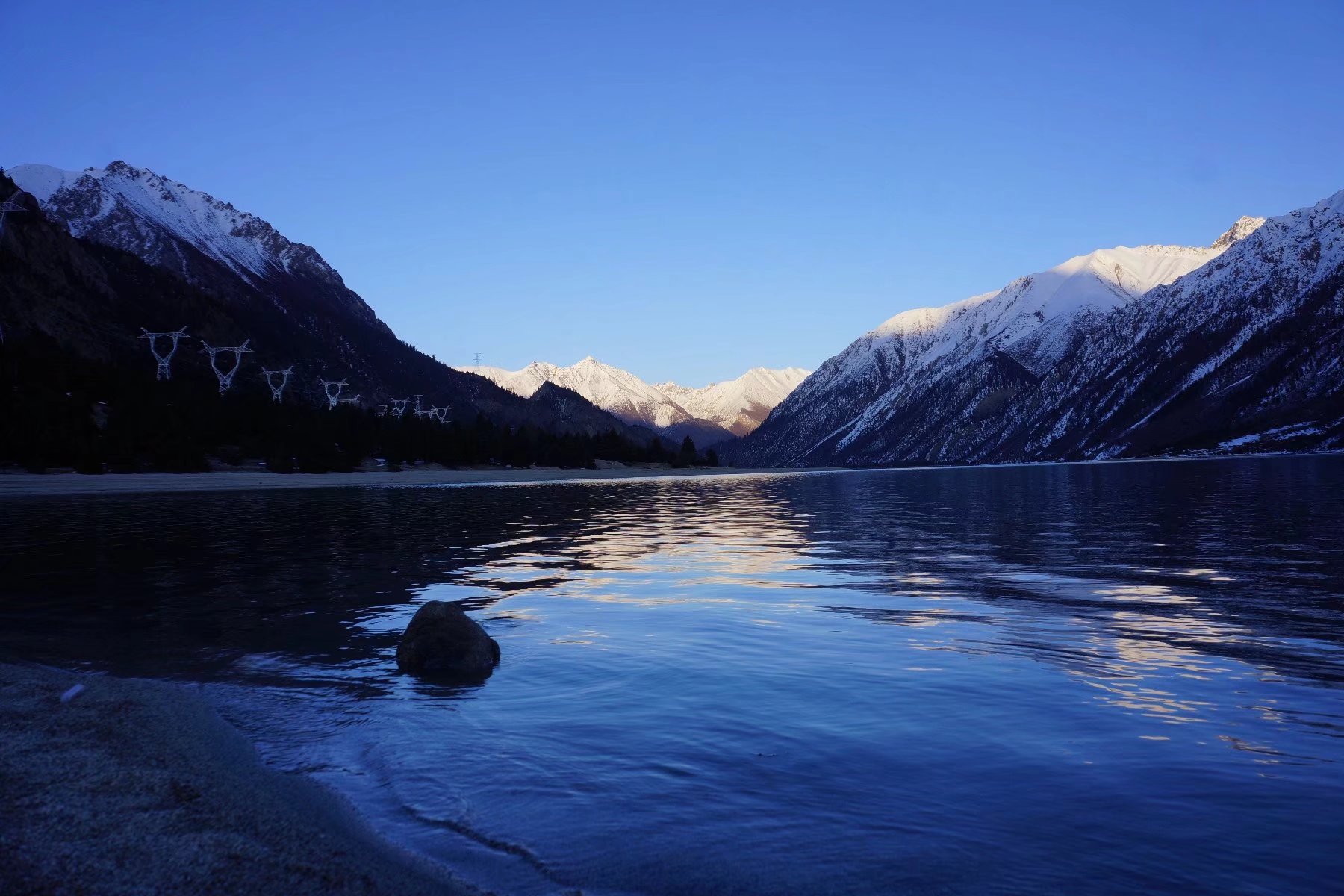 在日之将落前抵达下然乌湖,微风时起,吹皱一湖镜水,不见了雪山照影,只见得一湖深遂的蓝,那样沉静那样沉静,仿佛这世间所有的喧嚣都可以滤去,只留下风过湖面的行吟。。。。