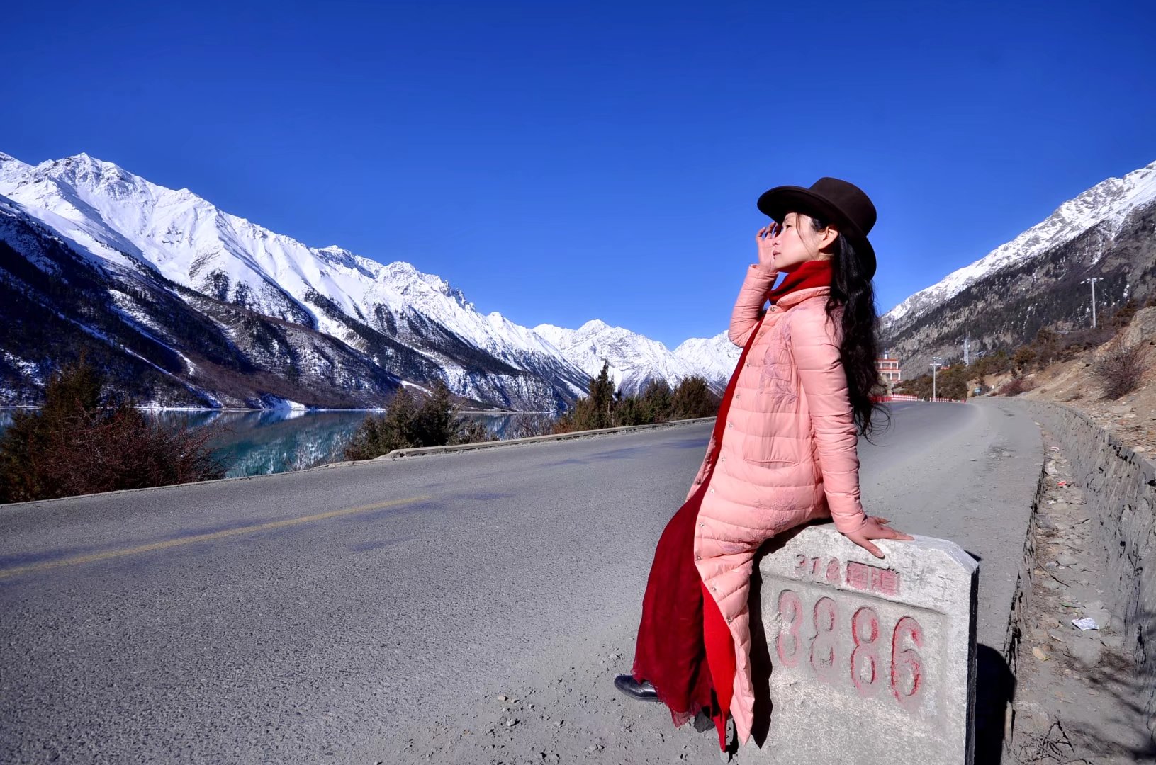 现在你知道318国道有多美了,如然乌湖这番的美景,路边比比皆是,穿越318,你可以走过春夏秋冬、走过恒古与久远。鸿茶说,找块路碑照个影吧,纪念曾走过的318。。。。