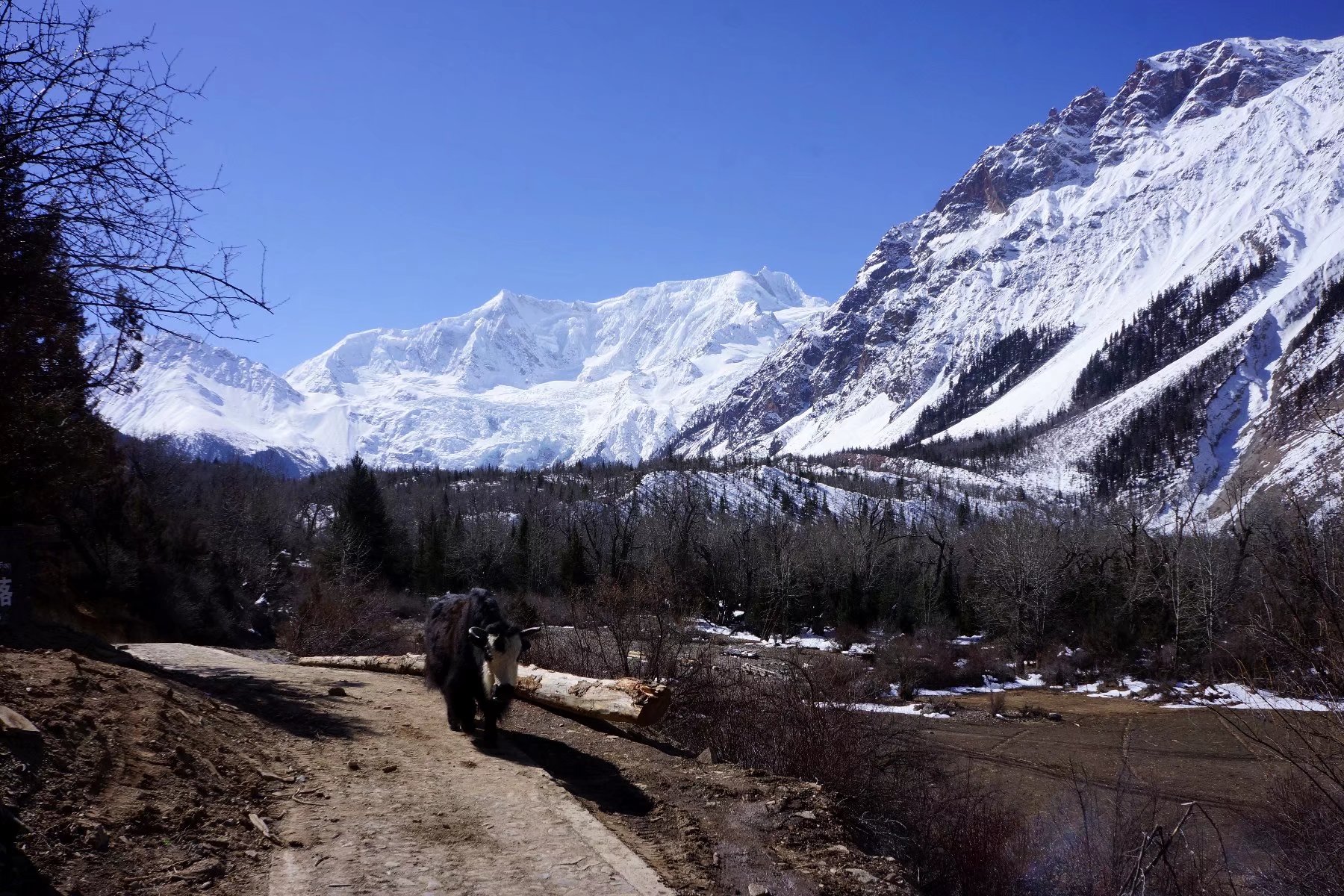 下一站:米堆冰川。由步行道徒步至冰川,走得疲惫不堪,幸而下山改走马道,减轻了不少体力。上下途中并无风景,只是一味地行走,更觉乏力。