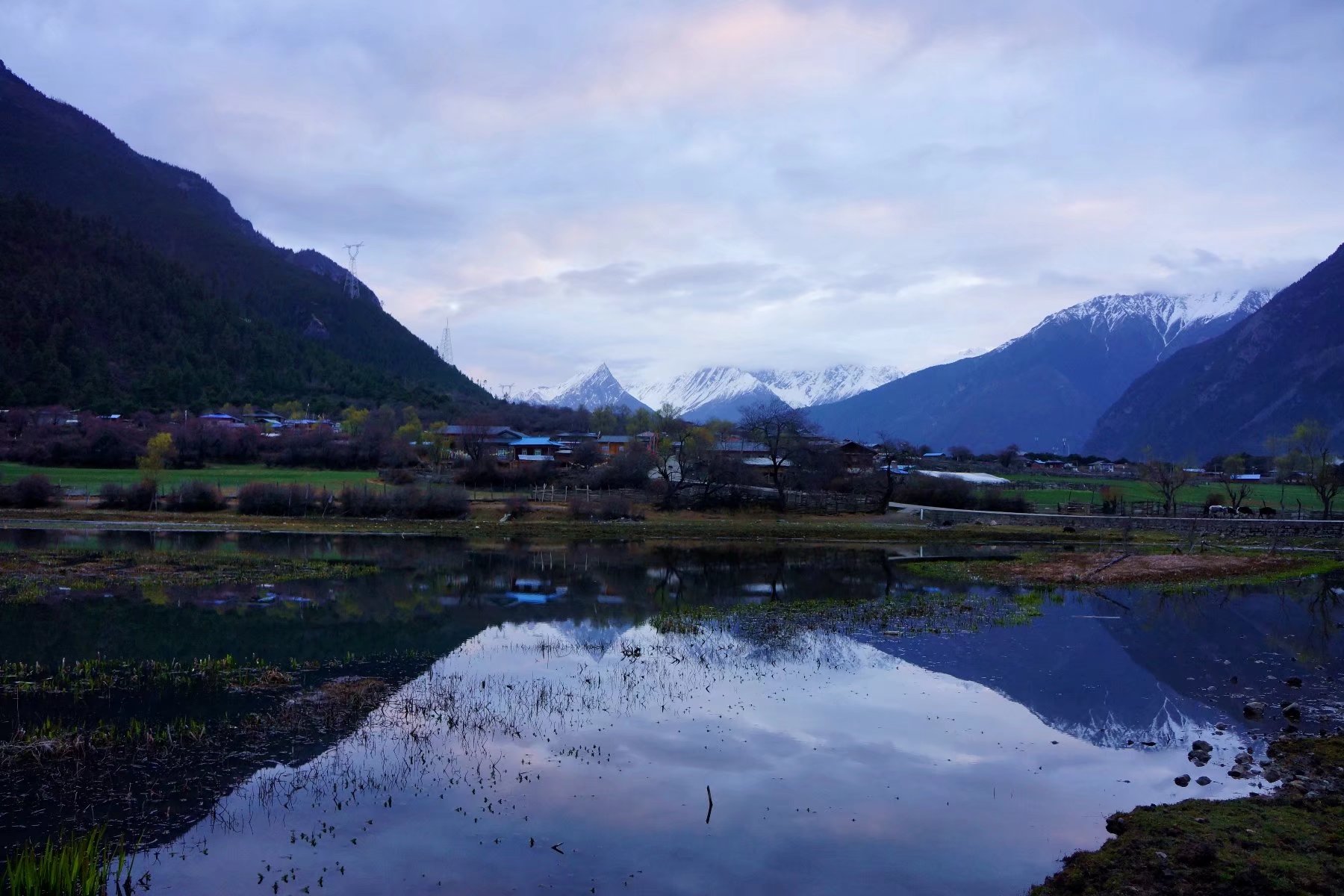 天未亮,就前往嘎朗村,等侯嘎朗湖的晨曦。可是,想像永远比现实美好,嘎朗湖及其清晨那无以伦比的美,只能停留在鸿茶的描述里了,尽管我已擅长用无边的想像去勾勒美好,而事实上我看到的终究只是一方浅水塘,杂乱的水草连雪山都不屑照影,但不管怎样,我还是瞬间喜欢上了这个静谧的村庄。