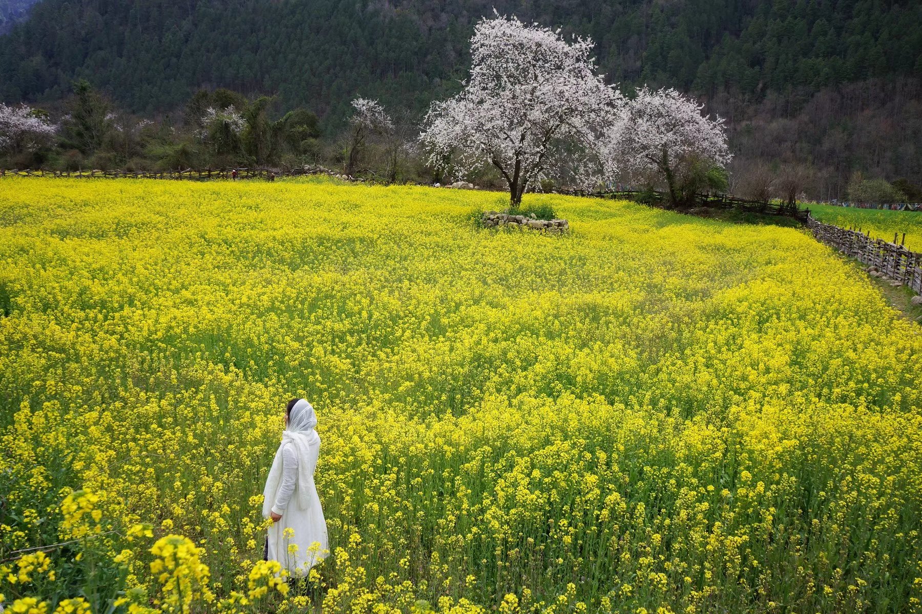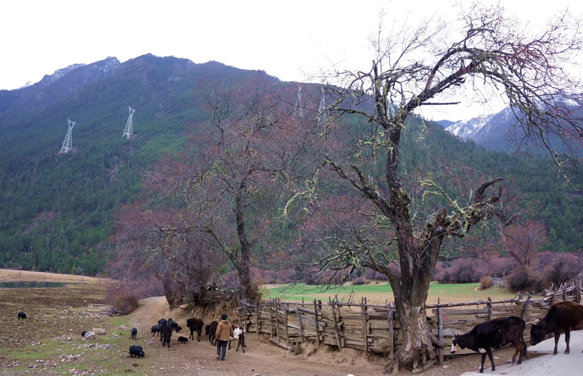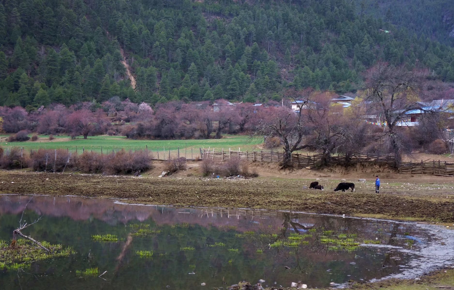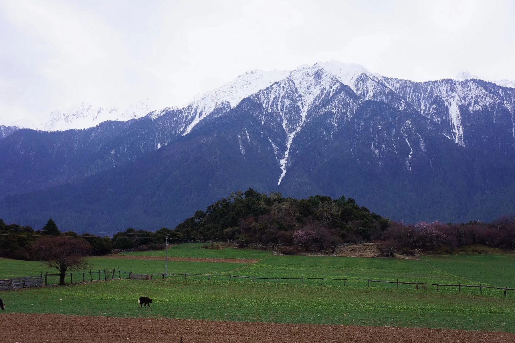 雪山、草地、牛羊、农舍,还有那一片片桃林,我想像里世外桃源该有的,这里都有。
