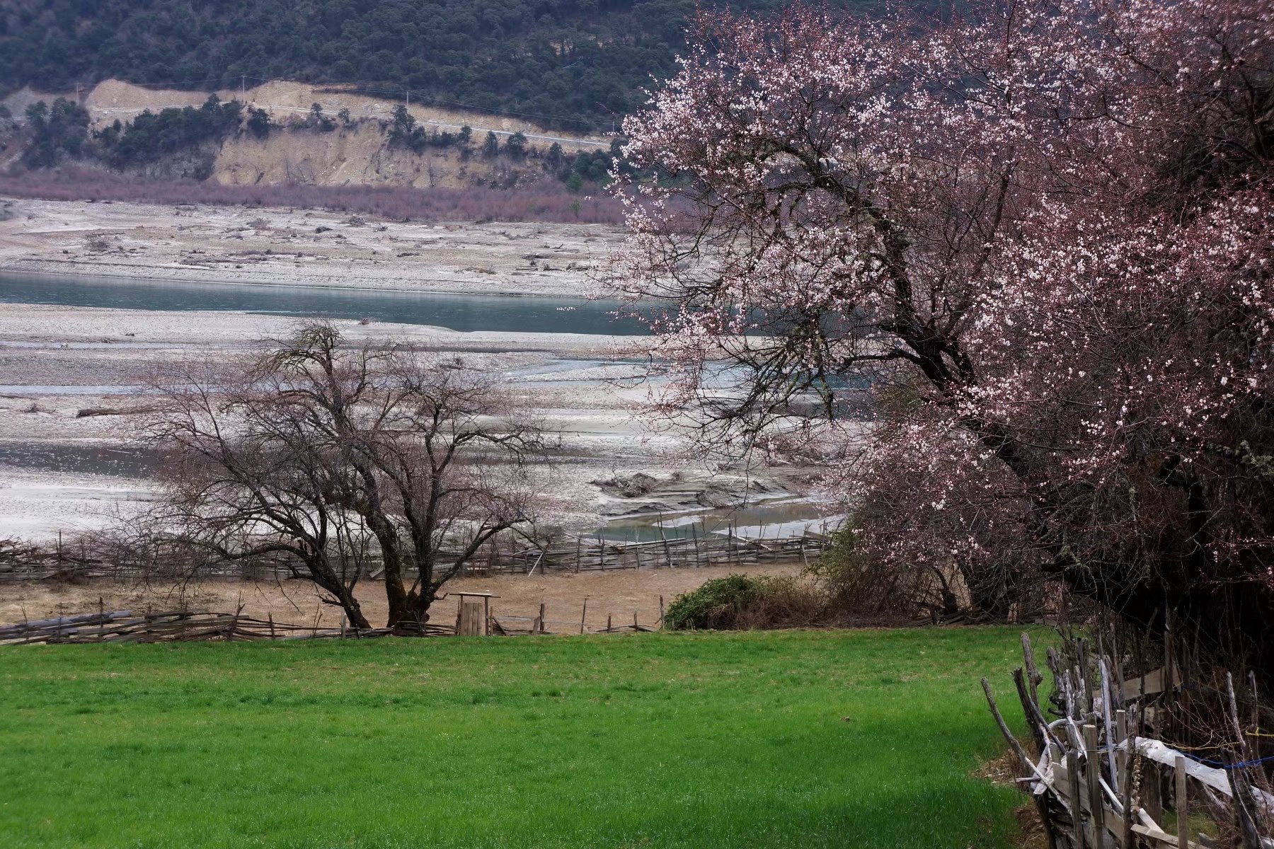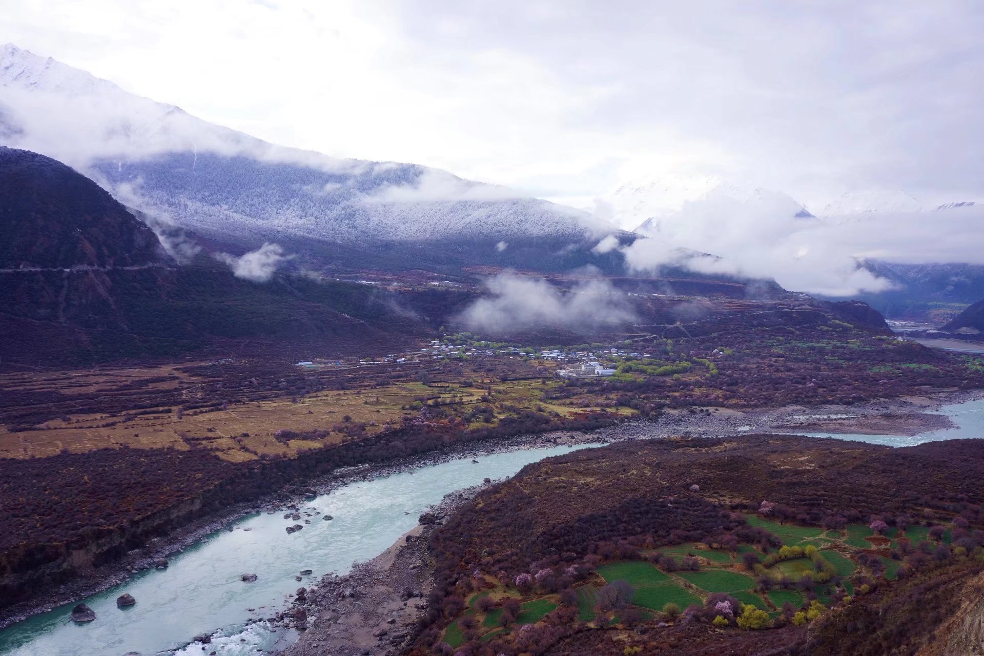 离开林芝,沿尼洋河一路前行,眼前的尼洋河谷又让我好一阵欢喜。前一秒还在可爱深红爱浅红里沉迷着,下一秒又沉醉在这黛山碧水间,更有草舍青青柳色新,若在此归隐定是极好,对一壶酒、一溪云、一竿身。。。。
