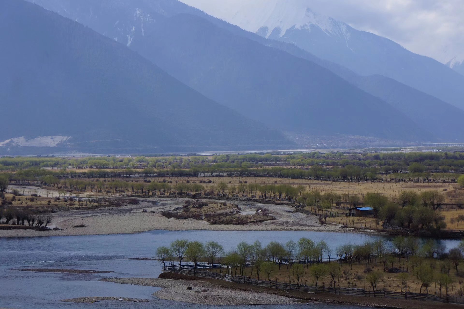接下来,就是沿雅鲁藏布江前行了,这怎么可能是雅鲁藏布江呢?我以为的雅鲁藏布江是如黄河般奔腾豪迈,怎么可能如此的秀丽静美呢?