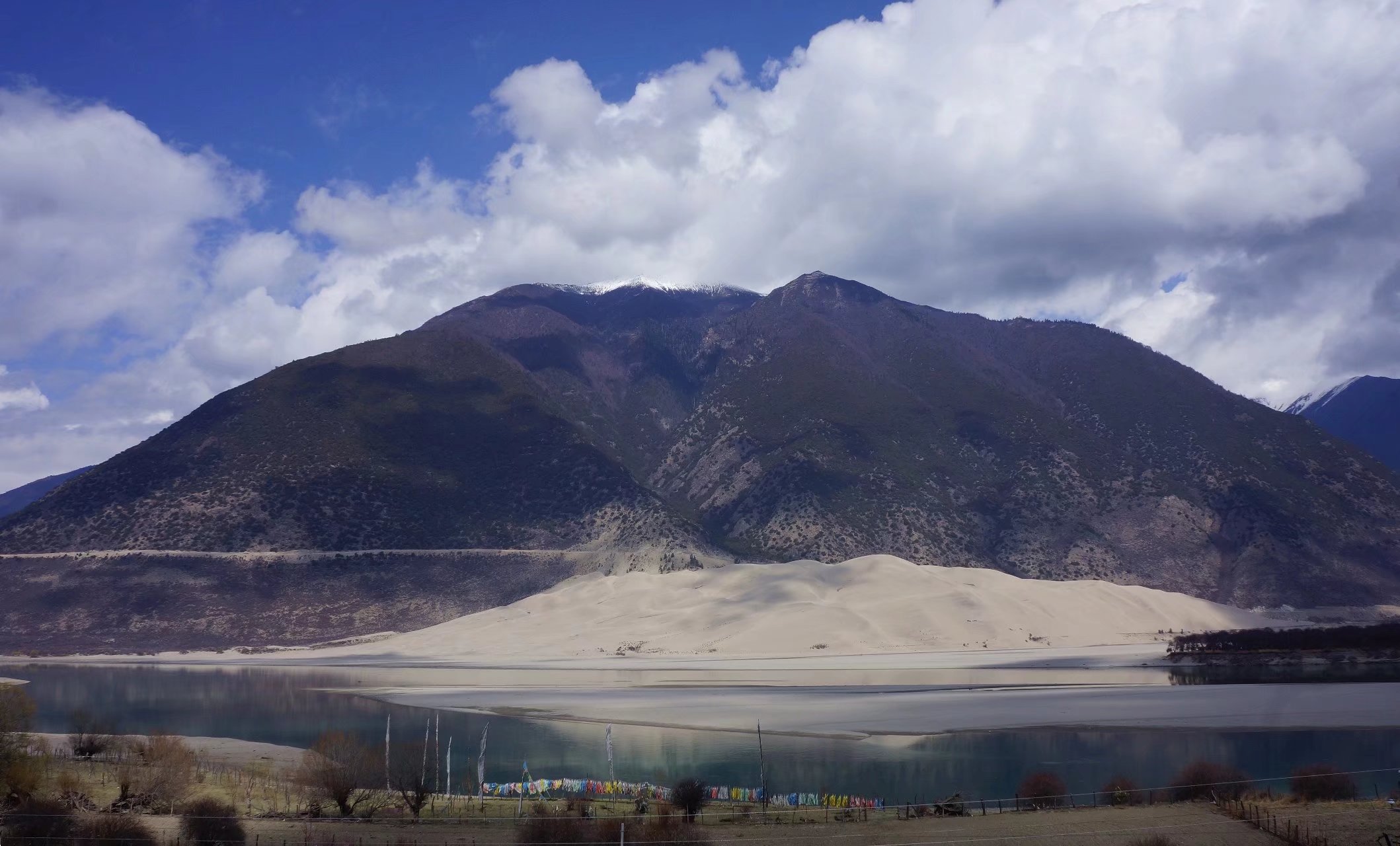 佛掌沙丘,因形似双手合十的佛掌而得名。实则是因地处雅鲁藏布江强风口,枯水期时河床上裸露的沙,经风与水的吹送搬运而堆积成丘。