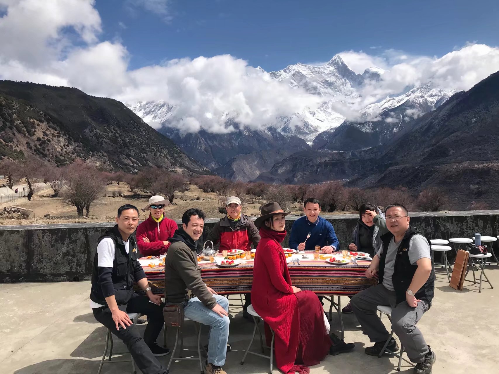屋顶“冷餐会”,吃什么不重要,重要的是在南迦巴瓦峰前、在春风暖阳里、在欢声笑语间。。。。