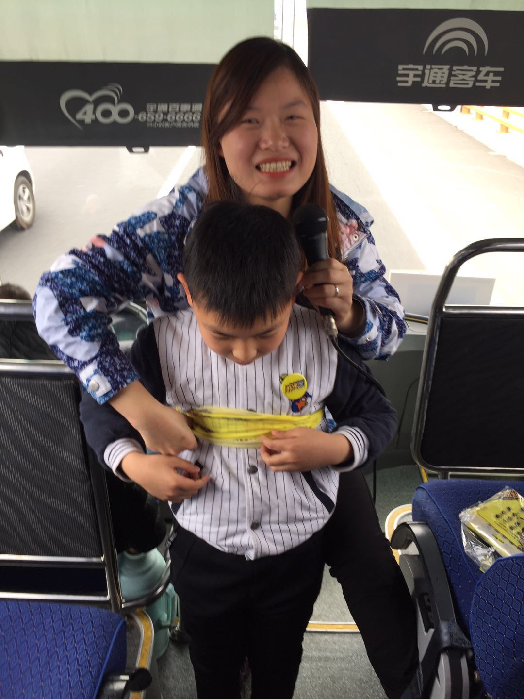 轩轩小朋友是老游侠啦,喜欢读书,旅行,已经参加过游侠活动有五六次了,是一位非常活跃的小男生,一上来就把整个车里的气氛活跃起来,并为我们展示了游侠头巾的108种用法。