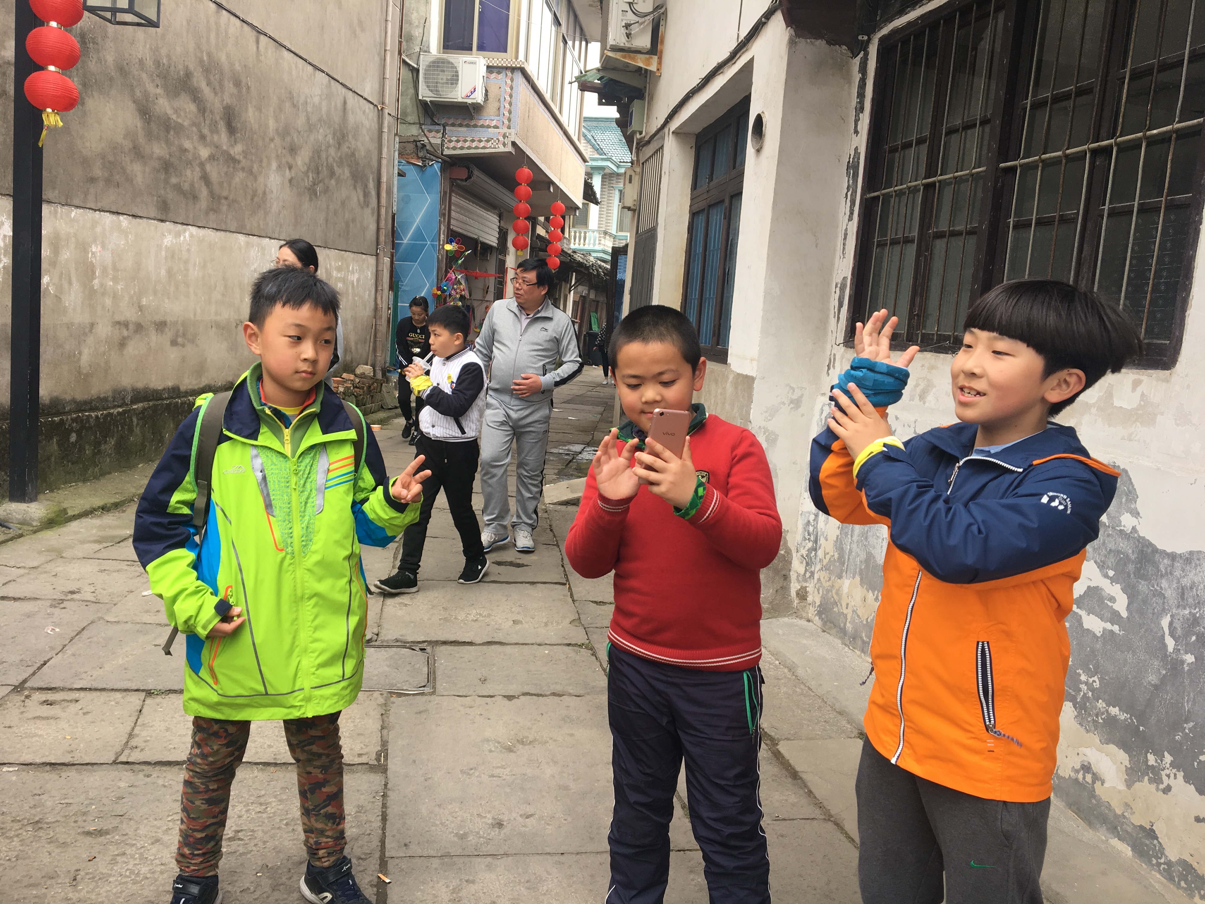 穿梭在古镇的大小游侠,一边品尝美食,一边完成任务书