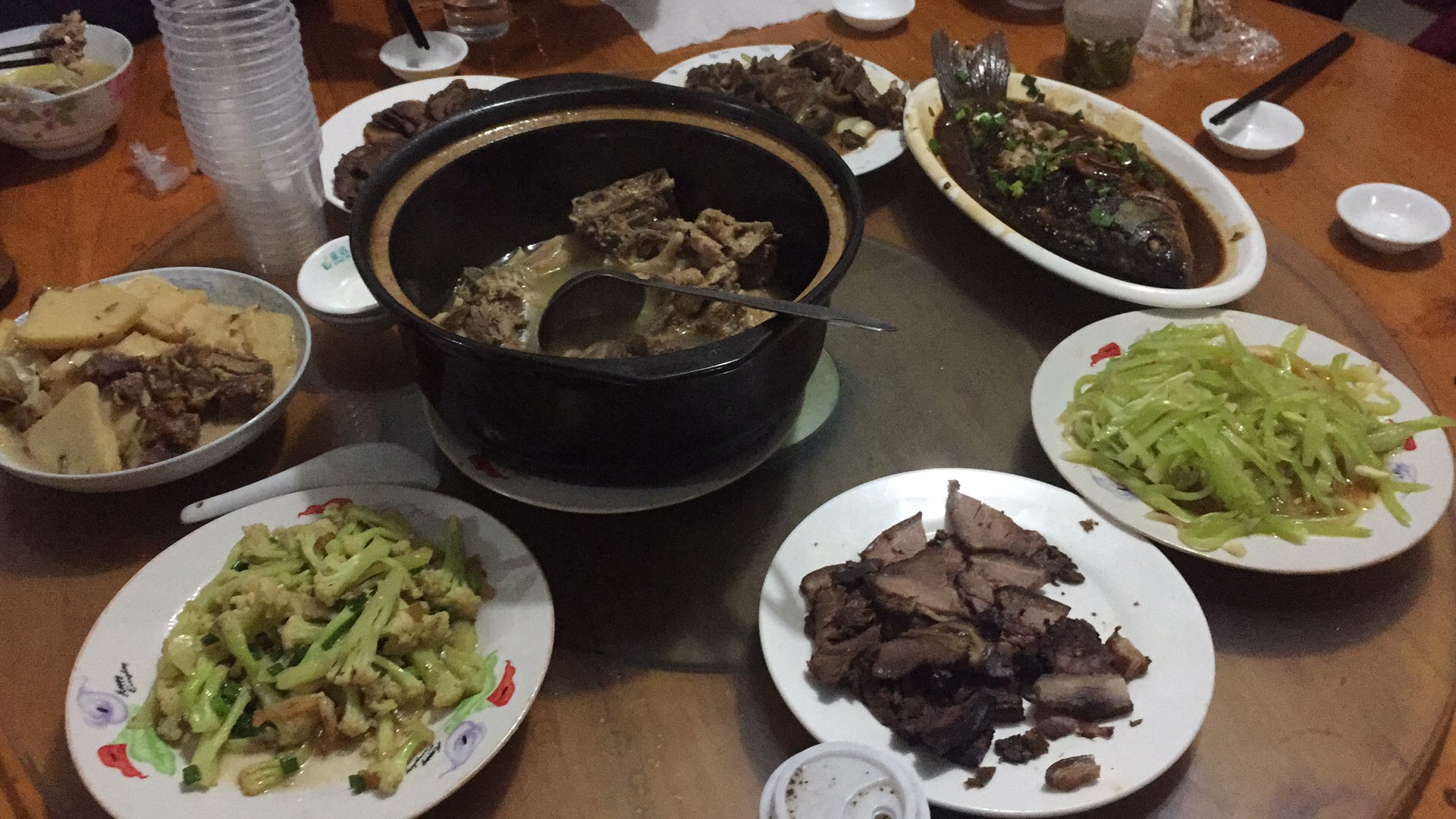 老板早已为征服了括苍之巅的勇士们准备了野猪肉、卤牛肉、大补鸡汤