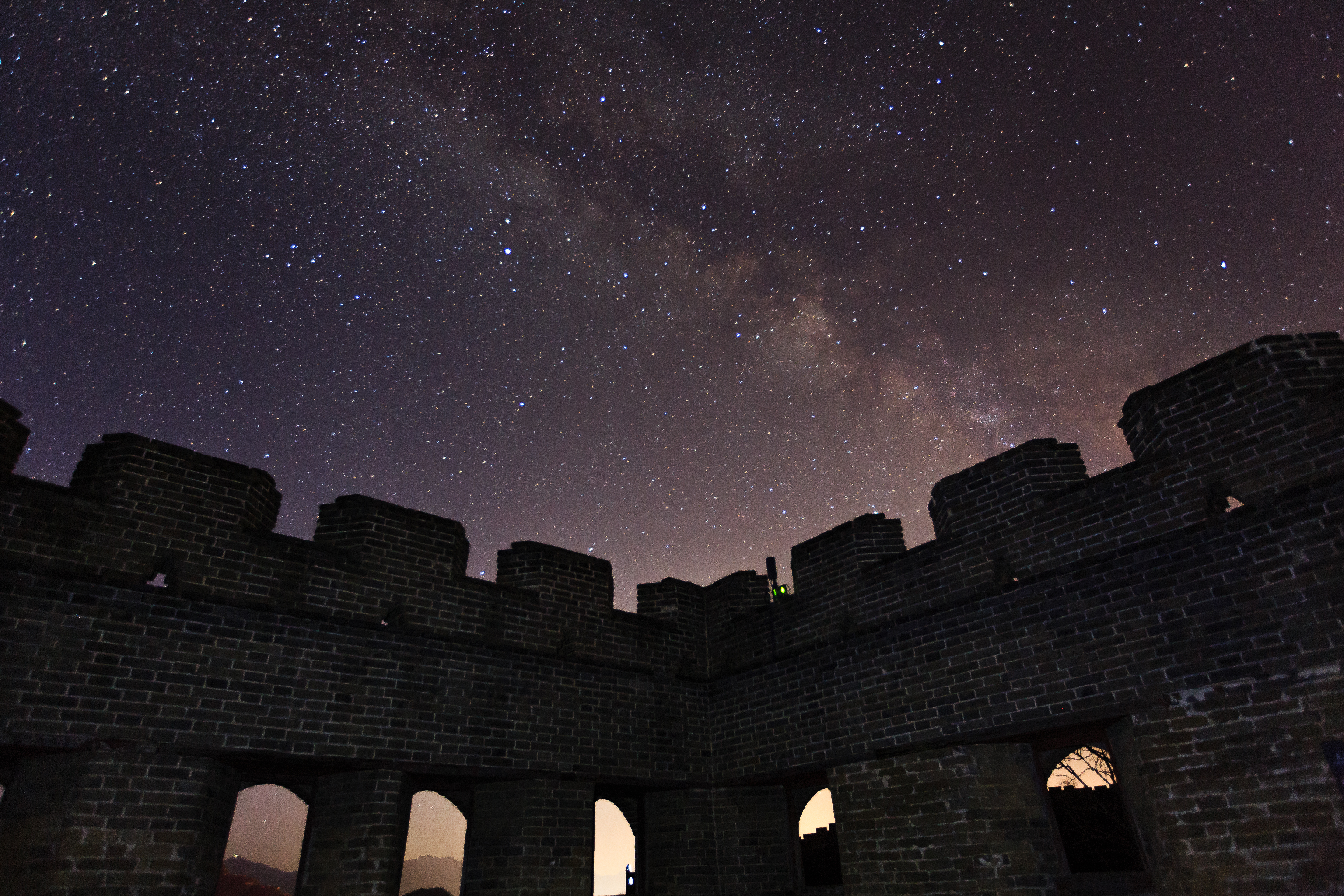 在星光闪烁的15日凌晨3点我们准时出发爬上了长城,在领队广角镜的指导下,队员们以长城为前景拍起了银河,棒棒哒。凌晨零点半上长城的两位队友还拍了星轨,在此借用队友“一山”所拍的星轨图
