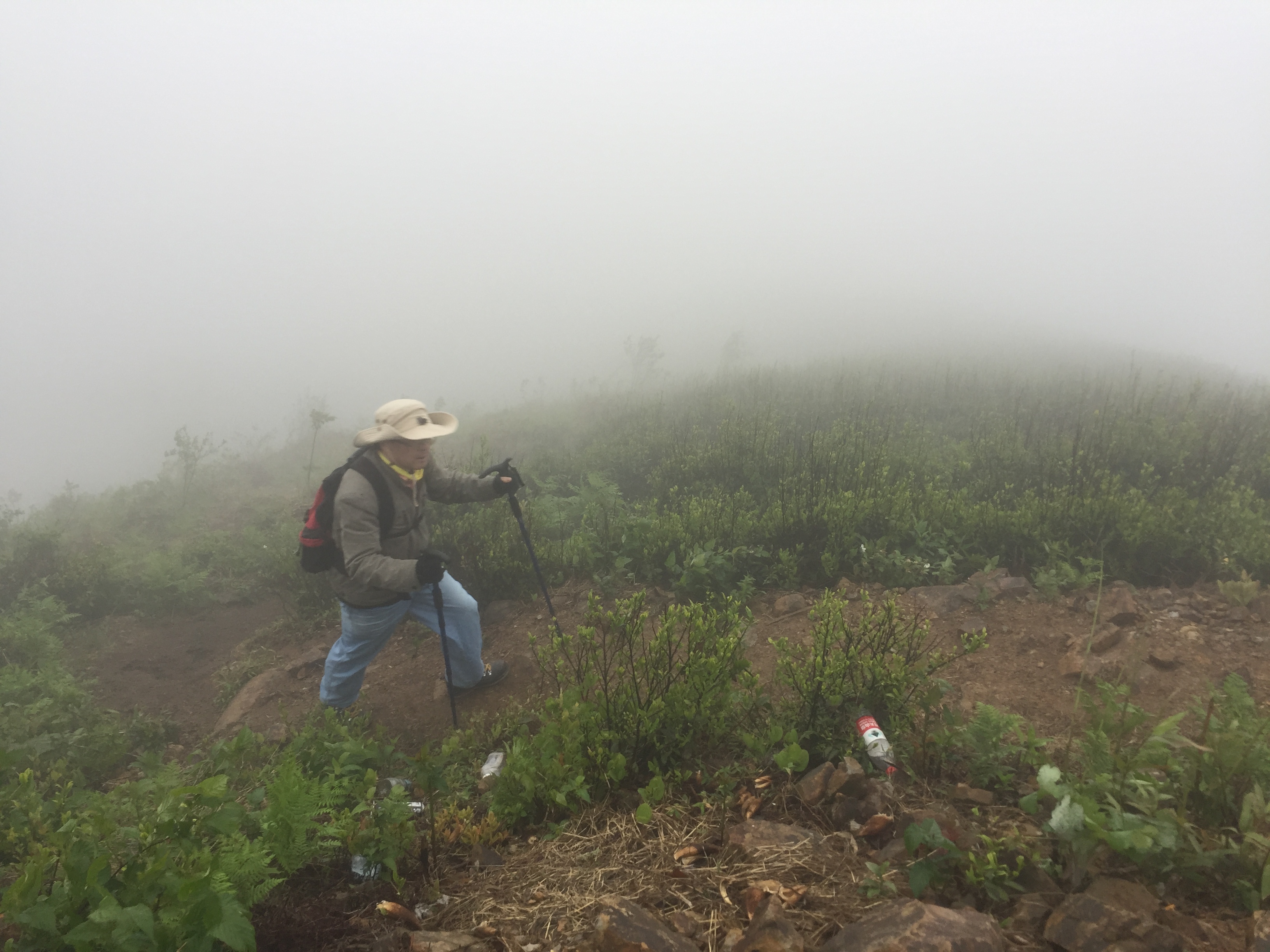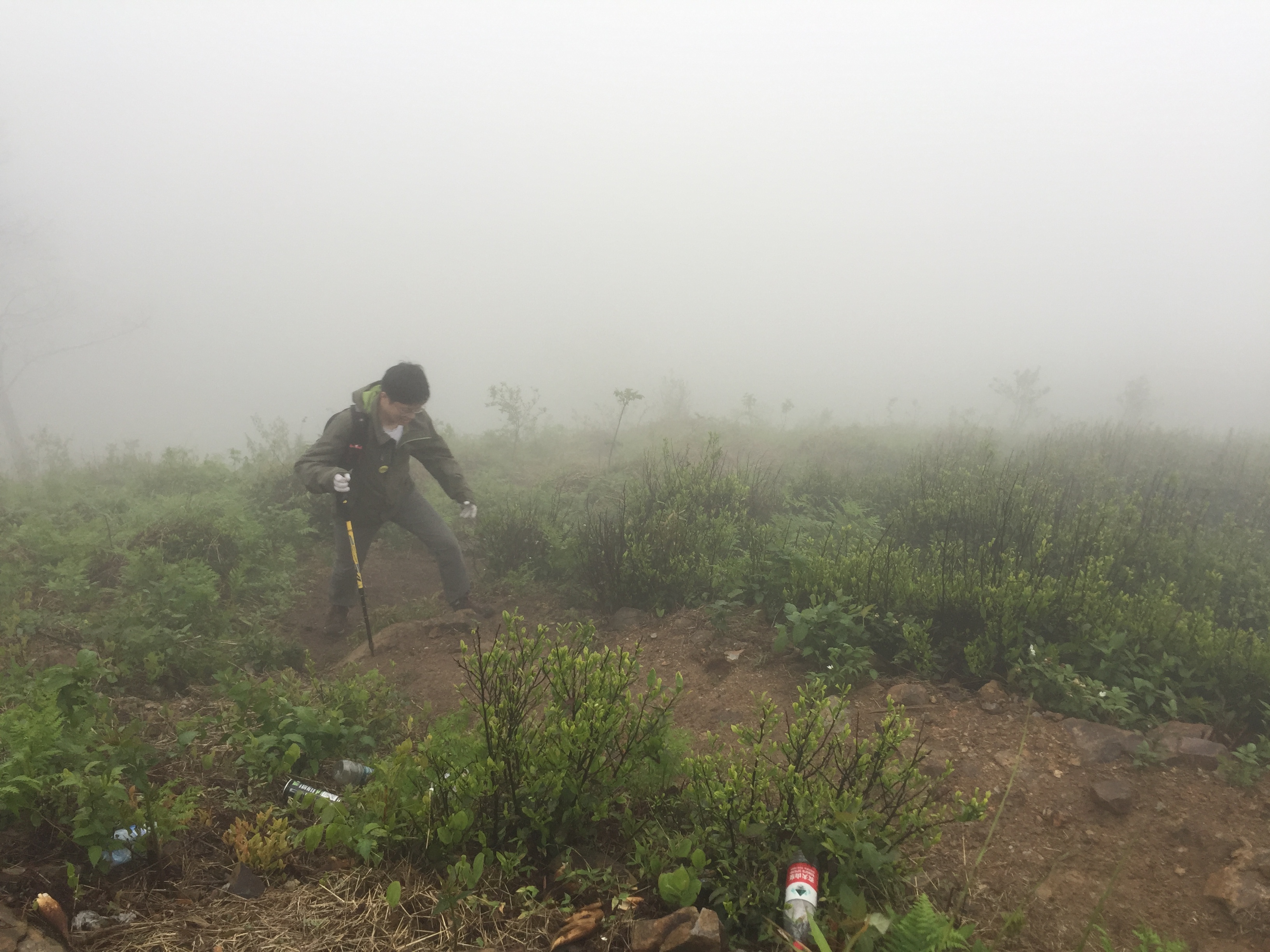穿过竹林来到一片茶园,离山顶不远了!