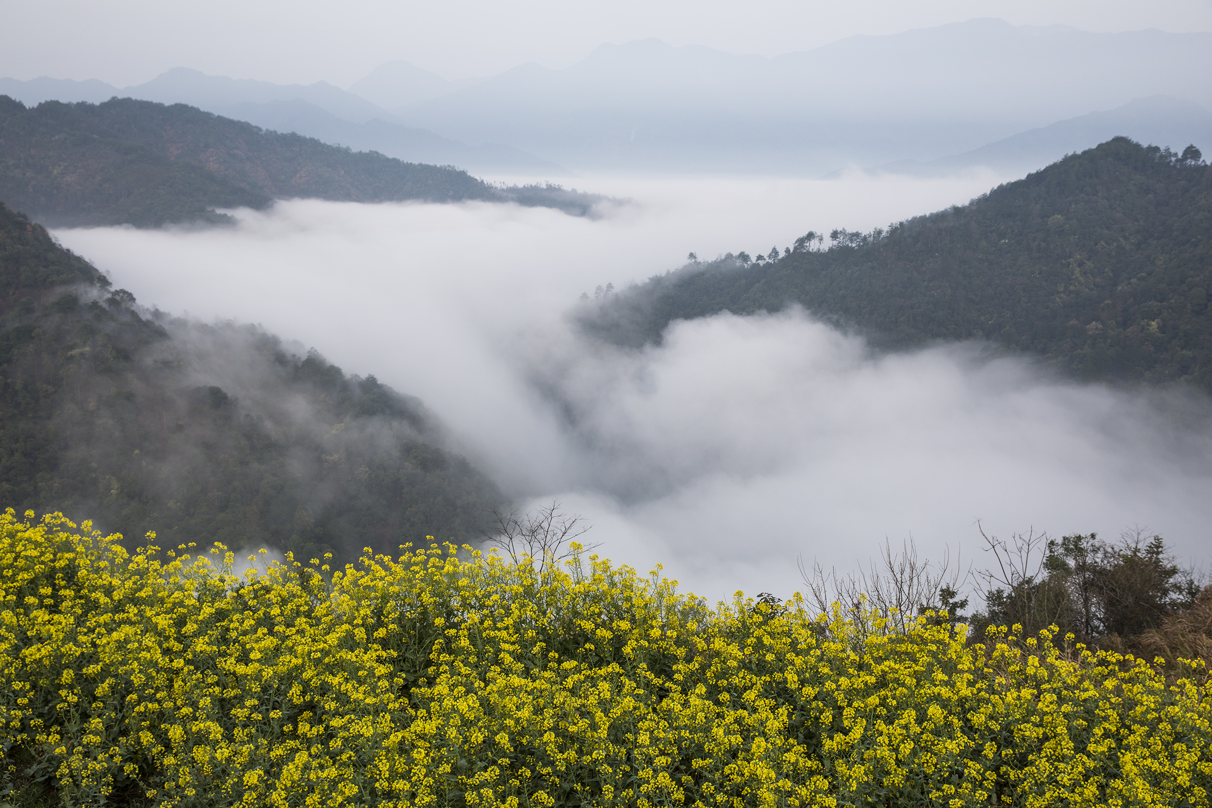 第二天:我们去江铃只为江铃这漫山遍野的成梯田状的油菜花地,从山顶直泄山谷,这金黄中间夹杂粉墙黛瓦的徽派建筑美得让人惊叹。下午经庆源,虹关,察关入住查平坦。