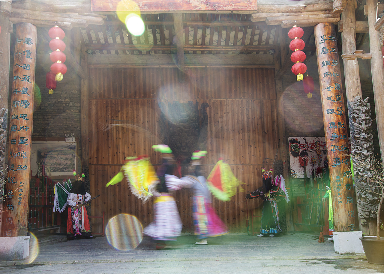 拍这些地戏时,是用了脚架的。速度是0.6秒至1/80不等,光斑不是后期加上去,而是在逆光中太阳的光线,是故意不加遮光罩而形成的。