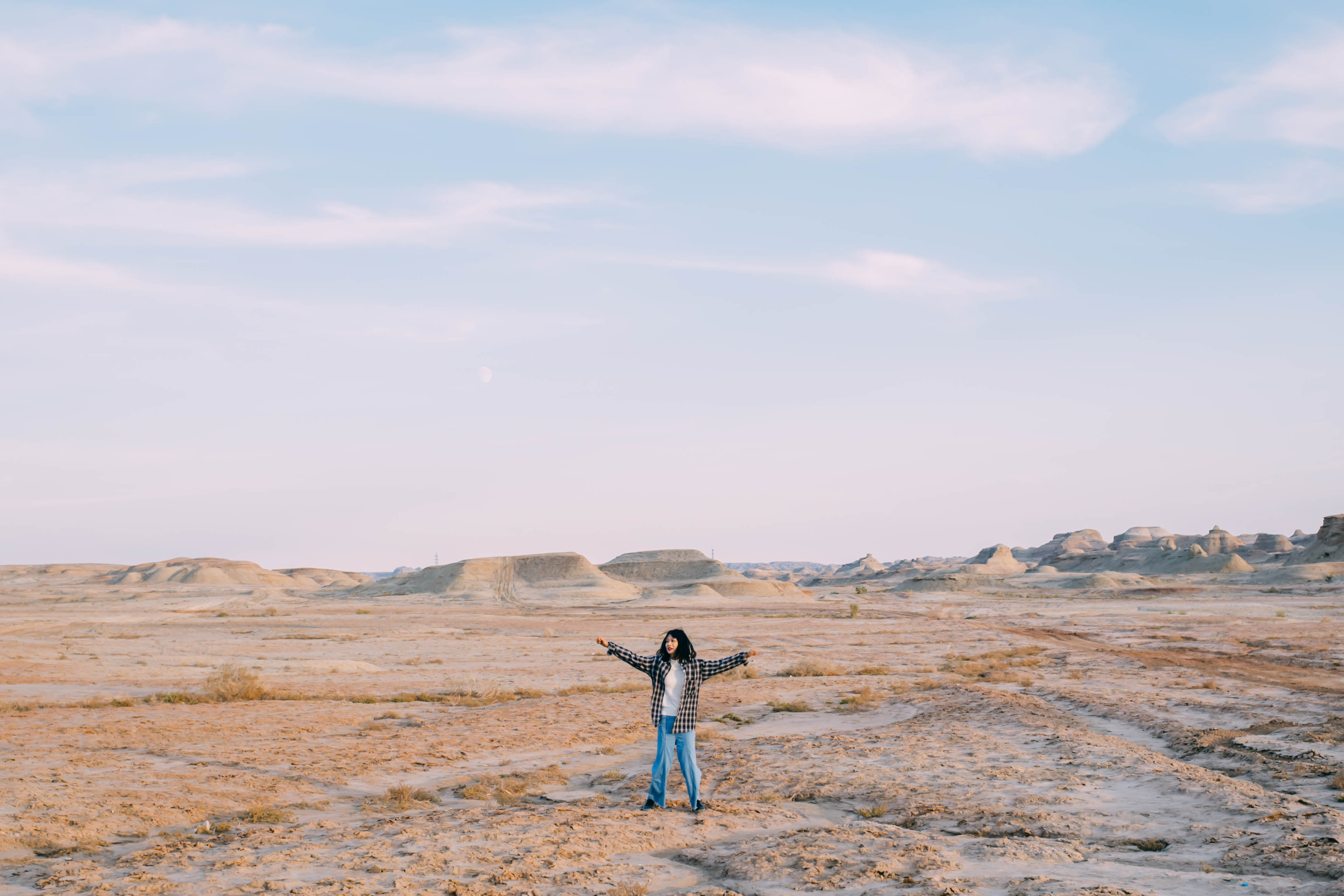 这是最后几天,在高昌古镇附近,橙子和Ivan去爬山丘了,航拍的他们