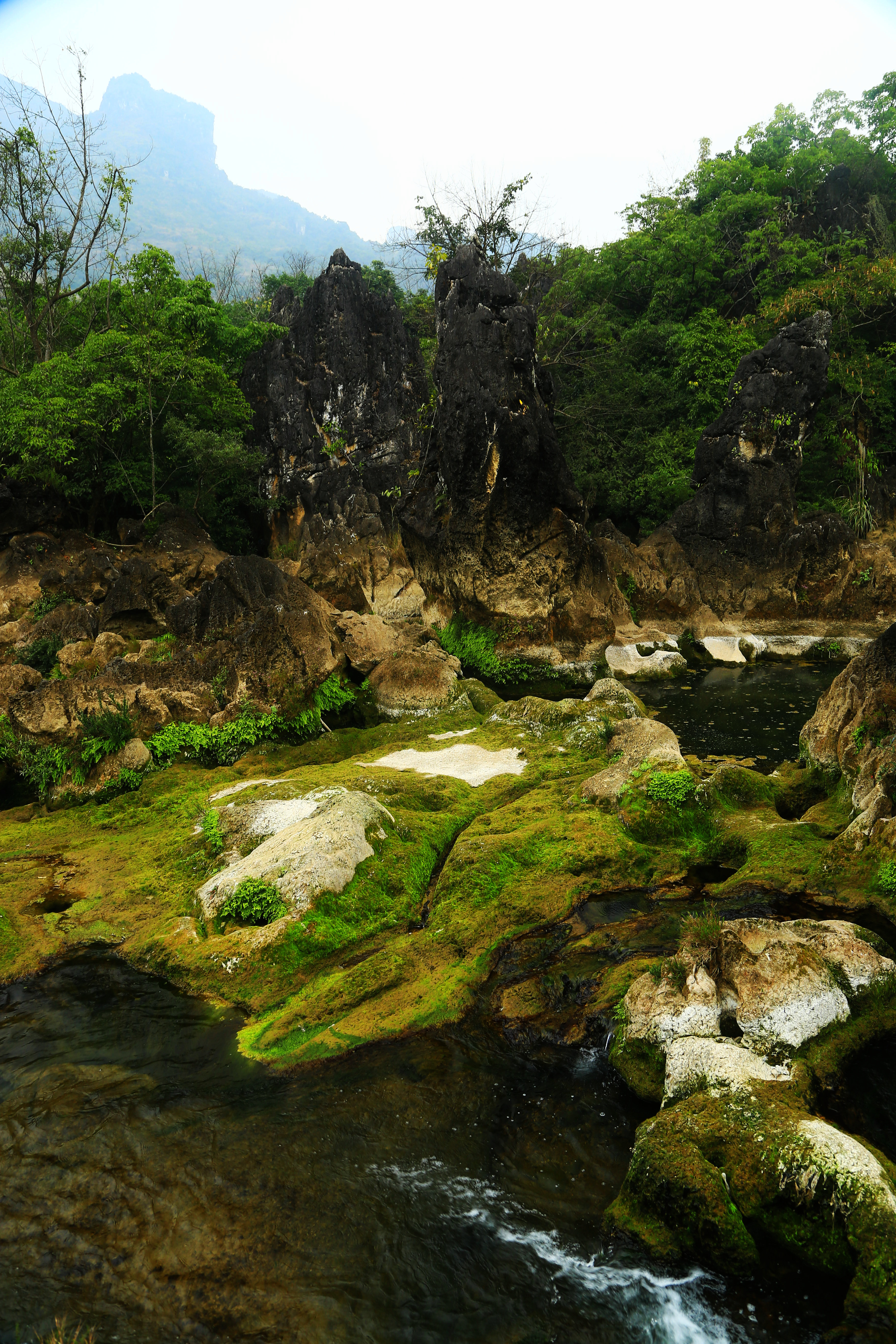 天星桥景区是第二站,位于大瀑布的下游,我们的游览路线是围绕大瀑布转圈,最后再集中精神去黄果树大瀑布。天星桥主要观赏石、树、水的美妙结合,我们在山水中间游走,欣赏天地之灵性。