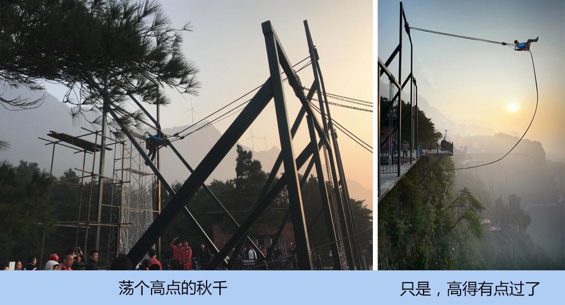 全新升级的8米悬崖秋千,绝对算是最惊险、最刺激的挑战项目。相较于原本6米高的悬崖秋千,不再采用人工推拉模式,而是电动操控,一旦启动,中途不能喊停,必须要荡完规定的时间才能停下来,简直就是来一场“生死契约”的挑战。仅此一项号称“勇敢者的游戏”,就值得你再来体验一番。悬崖秋千,无论何时何地去,都可以看到挑战者排起长龙,也足见这个项目的吸引力和刺激程度。