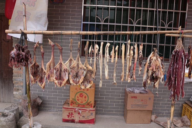 各种腊味香味飘飘。。。据说有的架子上还有老鼠干。。。