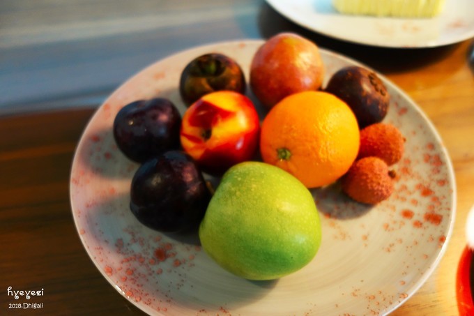桌子上摆着欢迎蛋糕和水果~蛋糕真的超级无敌甜,水果不是特别的新鲜。