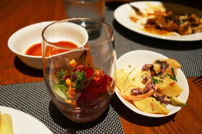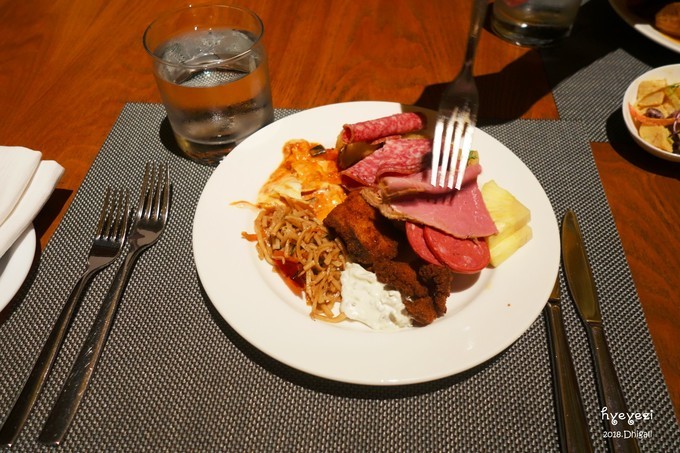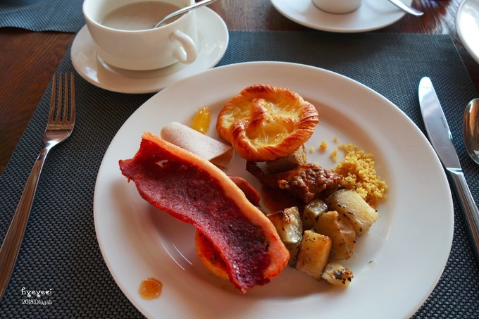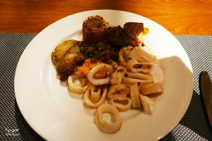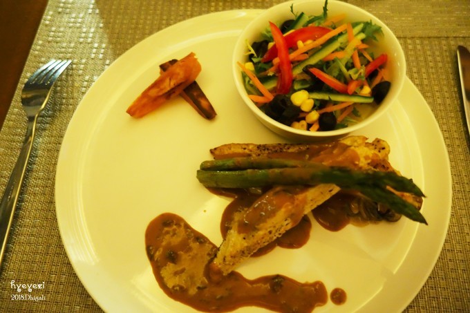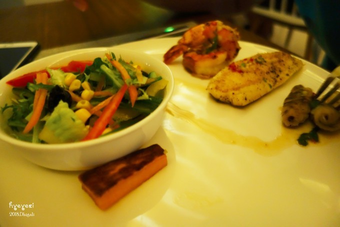 看完日落基本就到了吃完饭的时间。晚饭是在Capers餐厅,19:00开始,早饭也在这儿,全自助。第一天看见新鲜啊,什么都想尝试!不过有些菜真是尝一次就不想再吃了……比如说图里的这种片状的肠,吃着总感觉是生的,还有看起来很好吃的各种蔬菜,味道真的很奇怪!不过总体来说吃的还是不错的~能吃的饱饱的~