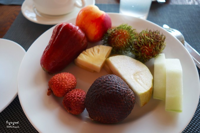 晚上有一个小插曲。回房发现太阳伞被插在旁边的屏障里了正打算打电话给前台,踌躇怎么用英文说呢,结果有一个小黑敲门要进来打扫卫生,我就赶紧叫他帮忙了。