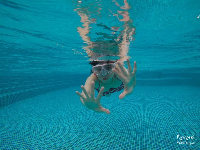 回屋休息,写了会儿手账,就想下去浮潜啦!本来自己都做好准备下水了,奈何第一次浮潜还是有些害怕,于是回屋把老公拽上才敢浮潜。