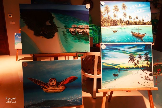 接待室旁边有一个画室,这些画都是售卖的~