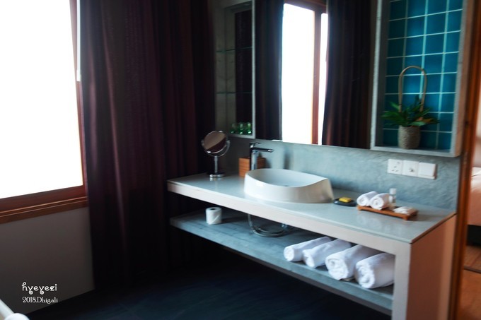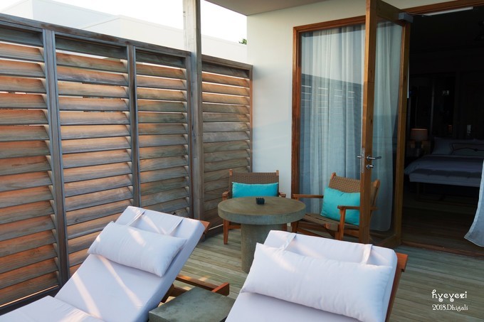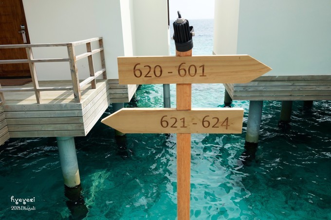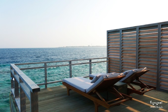 拿到水屋的房卡,顿时开心无比~624,最边上的一间,看日出最好的一间~一进屋我俩就哇哇哇在那儿感叹。论景色,水屋真是好过沙屋,不过论舒适度可能不如沙屋。晚上的海浪声还是很清晰的可以听到的。