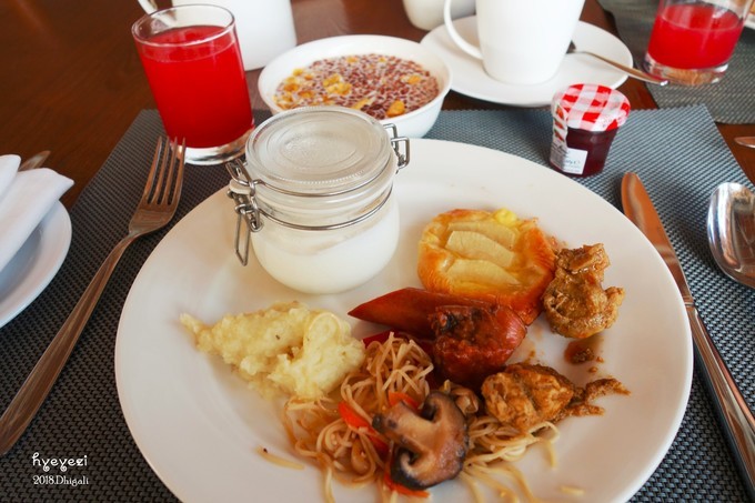 看完日出,7点去吃早饭,和昨天的晚饭是一个餐厅。