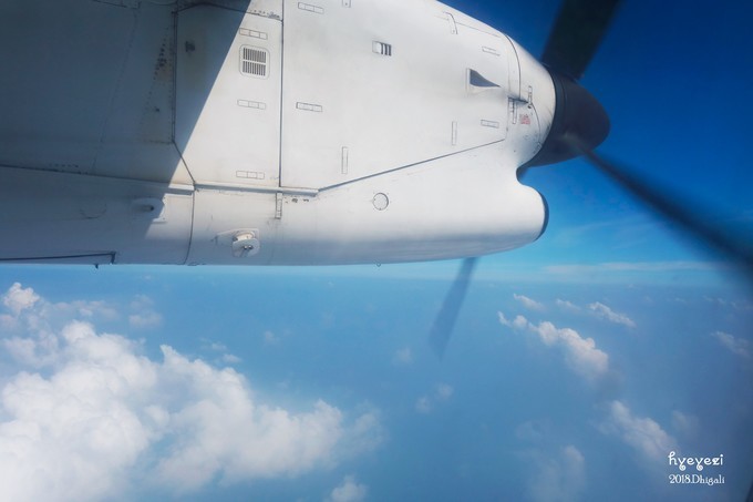 出去就会看见有人举着『DHIGALI』的牌子,跟着走会带你到一个集合点,再跟着另一个小黑去内飞的候机室,到候机室10:30。那天人很多,给的wifi密码半天也上不去。候机室还有简单的自助。这块我们给了小黑1美,感觉给不给都行吧。