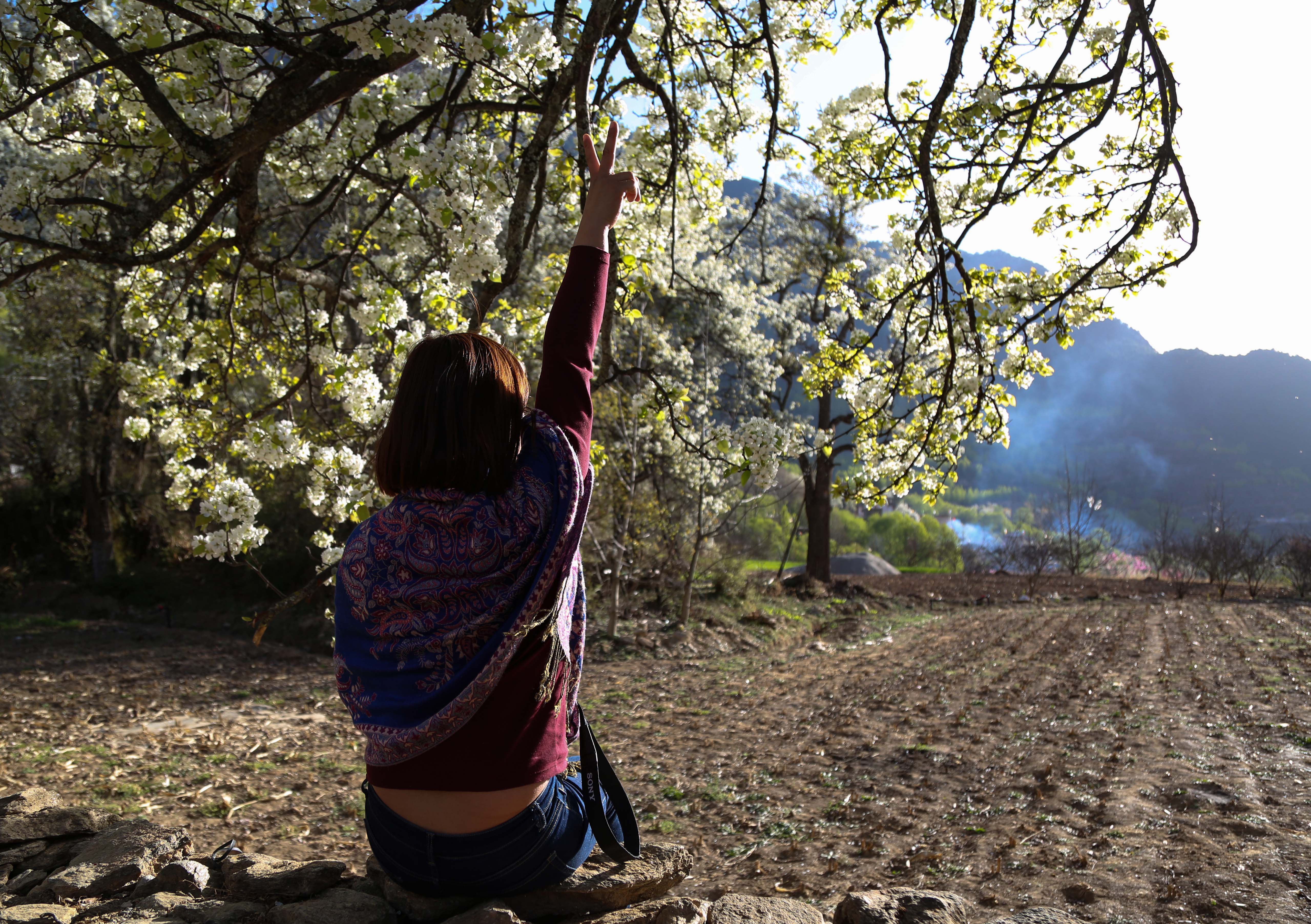 金川的梨花今年的花期提前了很多,天意不可违啊,等我们到的时候就剩下残花败柳两三枝了,虽然没有遇到最好的风景,但是也不枉此行。还是有少部分梨花依然盛开着。
