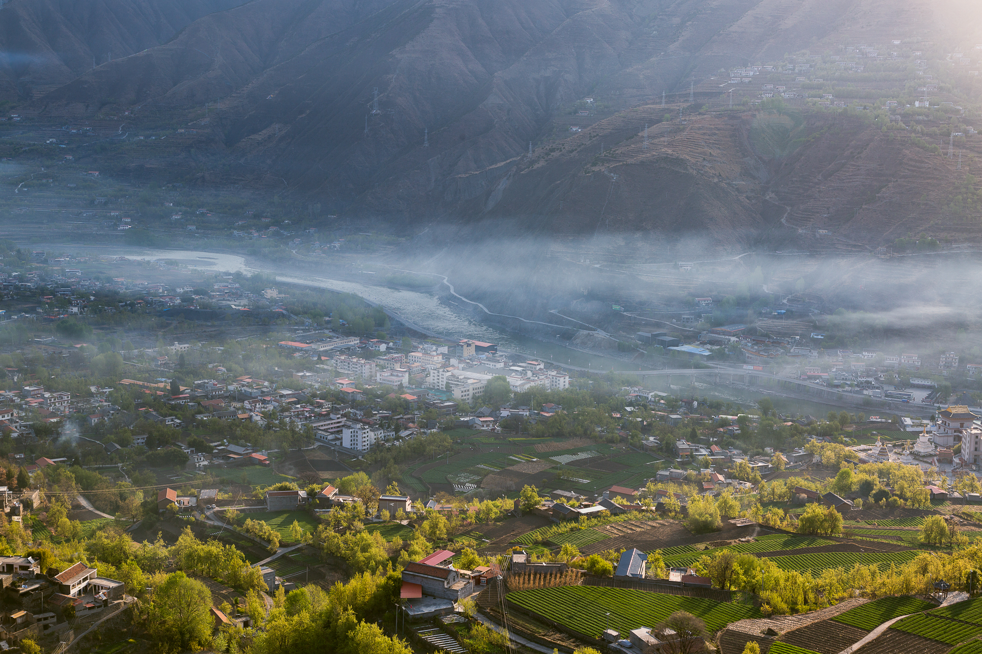 中路这我觉得最美的事,这一片藏寨安静祥和的融入进了这唯美的风光了 ,所以我拍的小景多一些,也会把藏寨的动态表现进去,比如说早晚的炊烟。