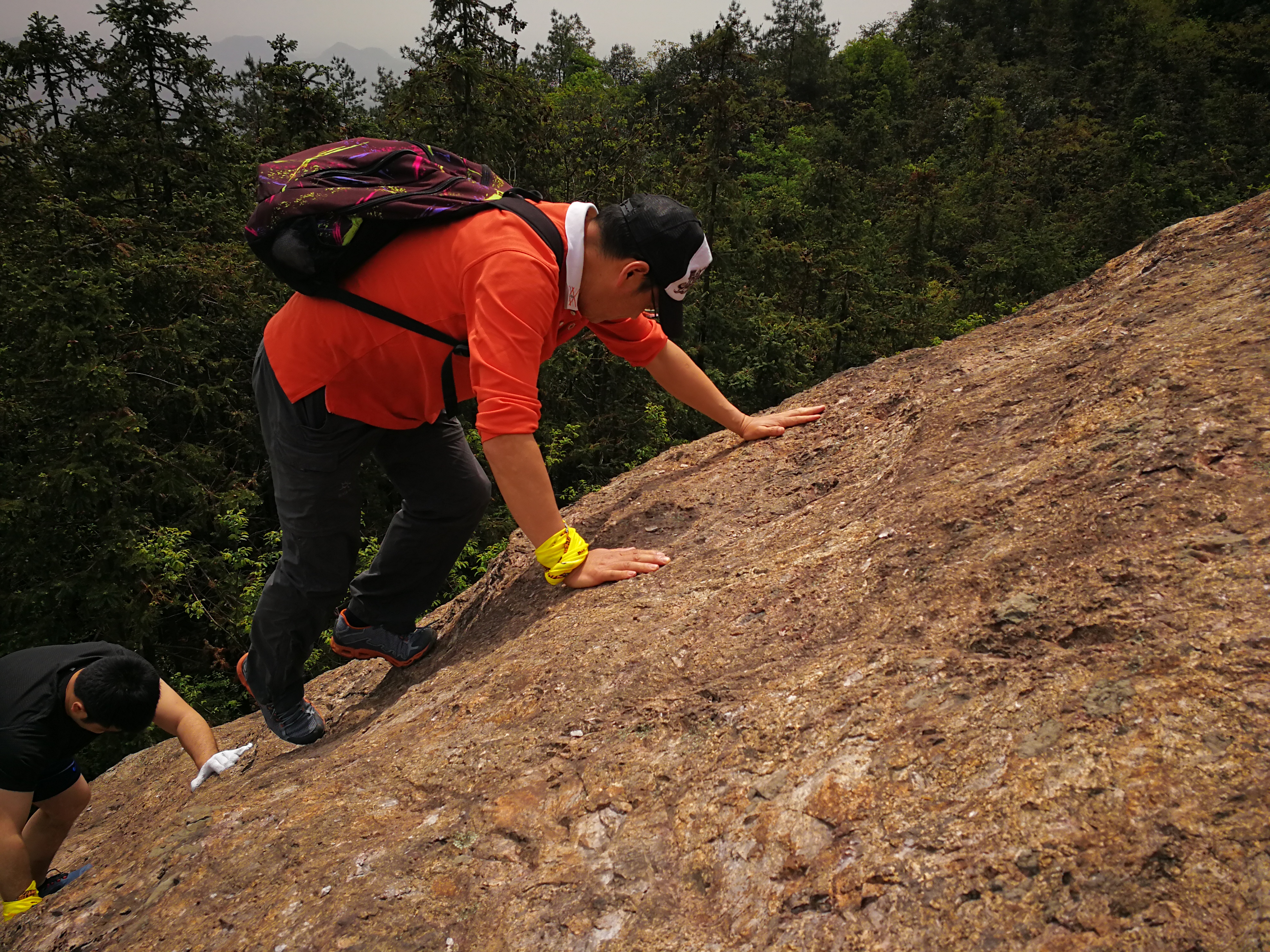 下车整装之后,我们就开始登山了。我们一行穿梭在树林之间,阳光穿过树枝梢头斑驳地照在我们的脸上,我们有说有笑,彼此谈论着各自喜欢的话题。这种轻松的情景发生变化,是在遇见了横在我们面前的山坡以后。因为那山坡要手脚并用,爬行,才能上去。