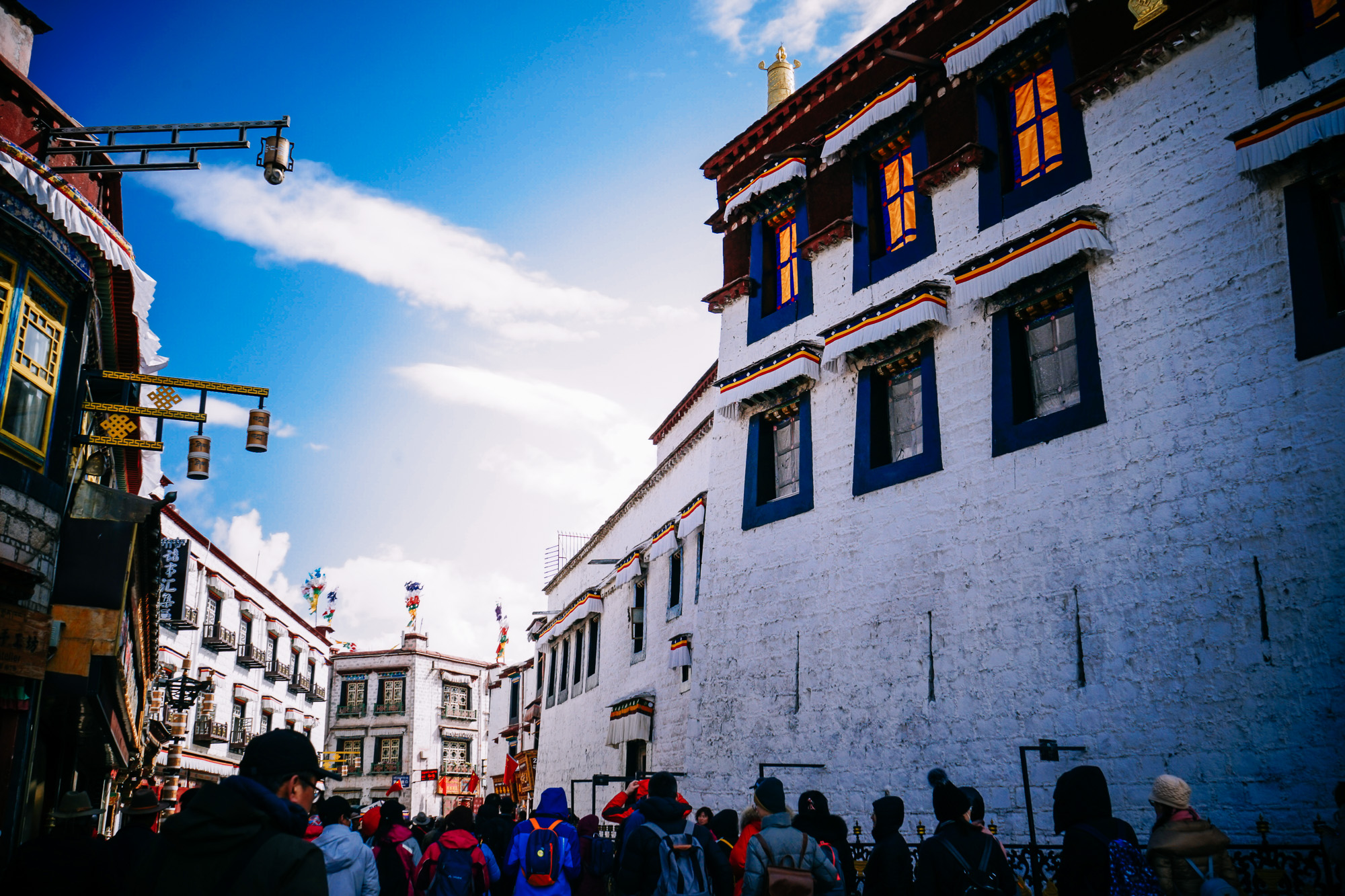 在大昭寺外的八廓街形成一道奇异的人流,好像整个街道也是一个巨大的转经筒,从古至今、日夜不息的在转动。