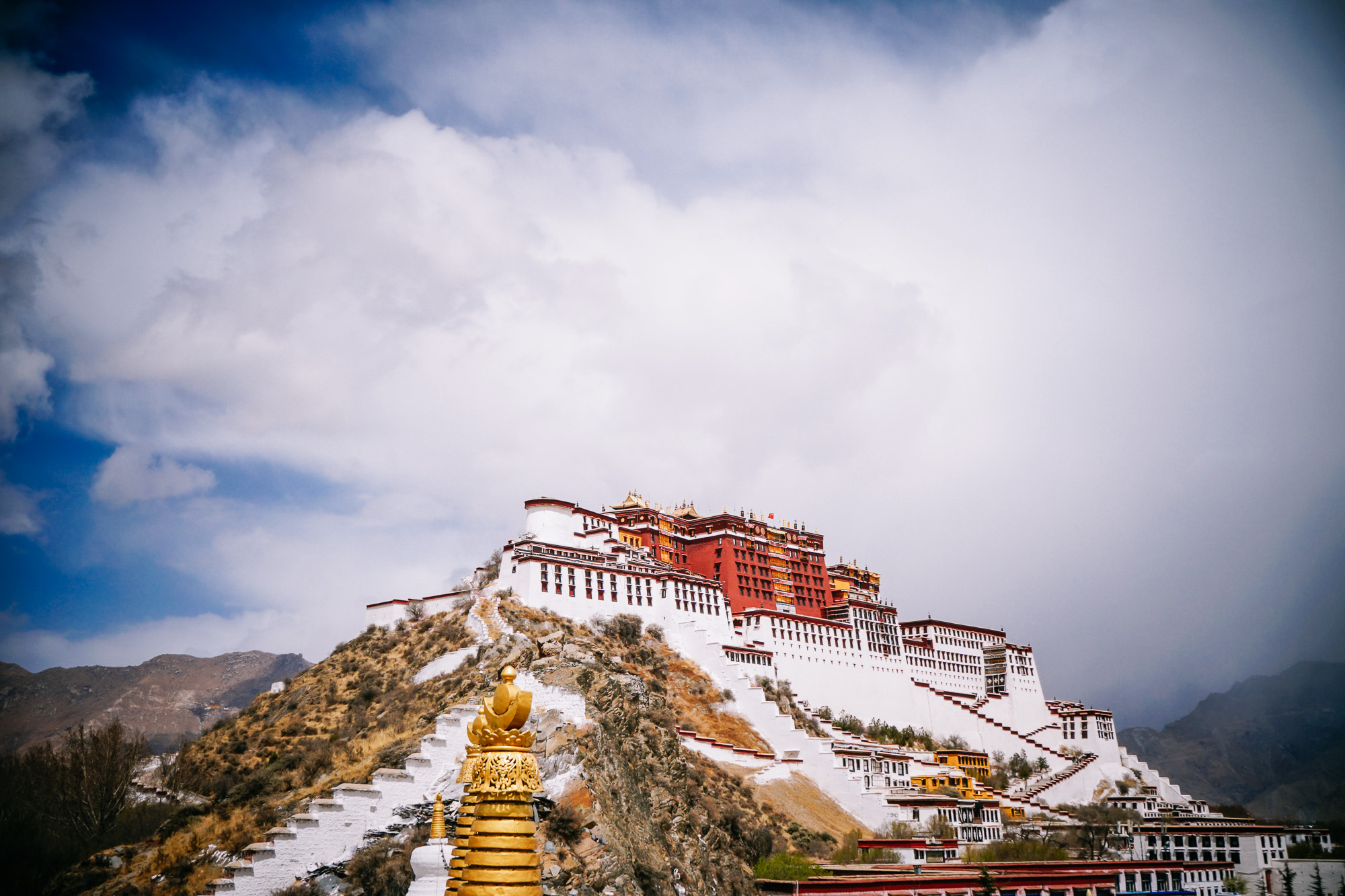 布宫坐落在一个隆起的山丘上,基本上在拉萨的城区都可以远远的看到。